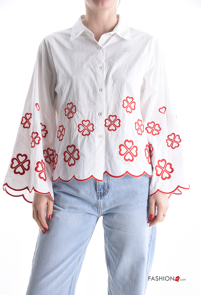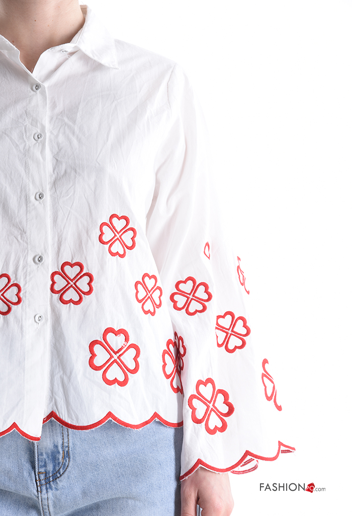 Embroidered long sleeve with collar Cotton Shirt with buttons