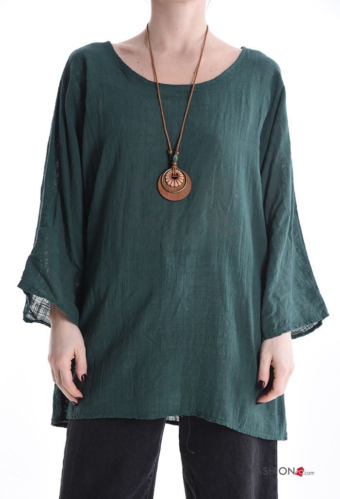 Home > Clothing > Shirts & Blouses > long sleeve crew neck Cotton Blouse with necklace