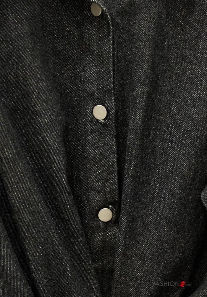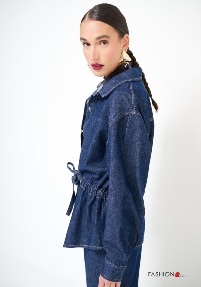 long sleeve with collar denim Cotton Shirt with buttons with drawstring