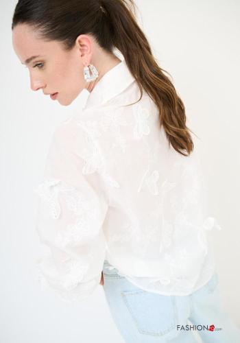 Embroidered long sleeve with collar Cotton Shirt with buttons