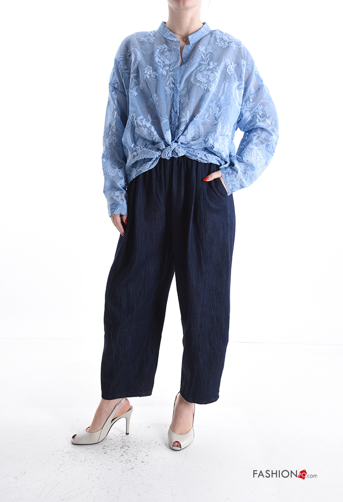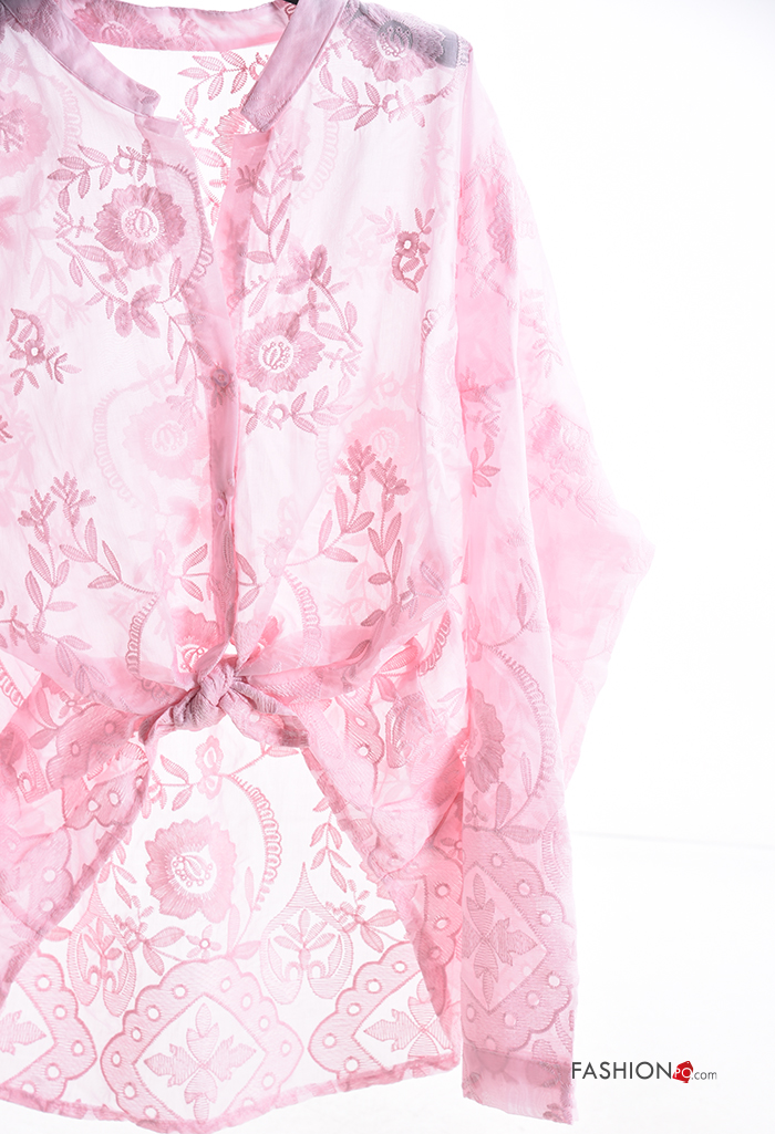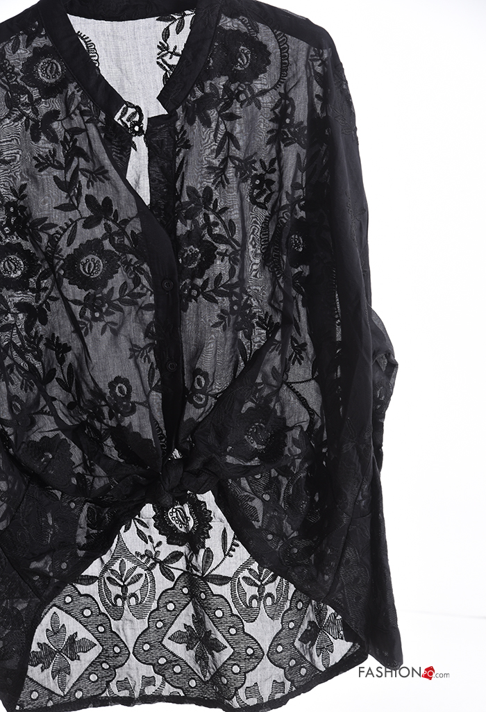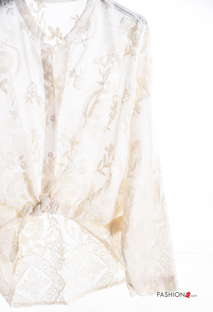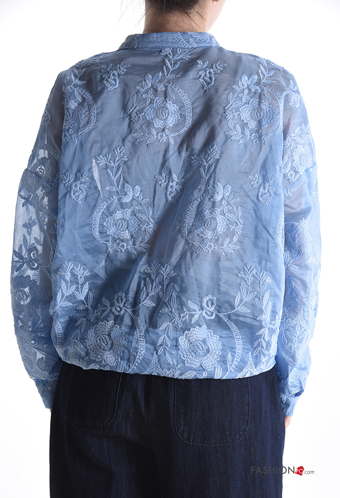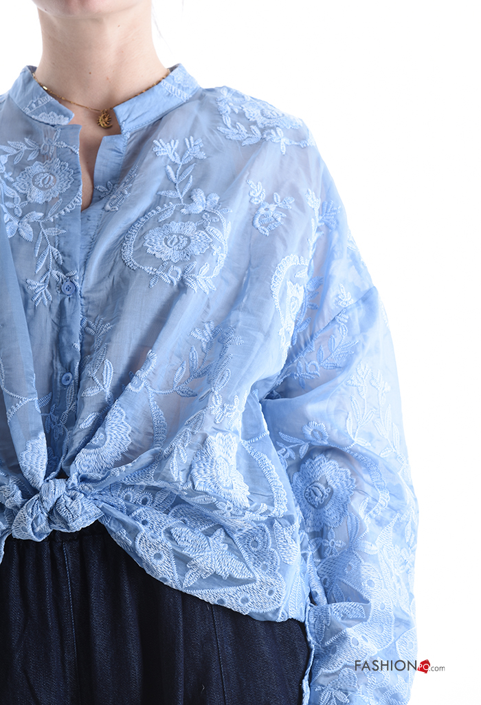 Home > Clothing > Shirts & Blouses > Embroidered long sleeve Cotton Shirt with v-neck