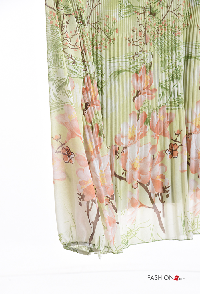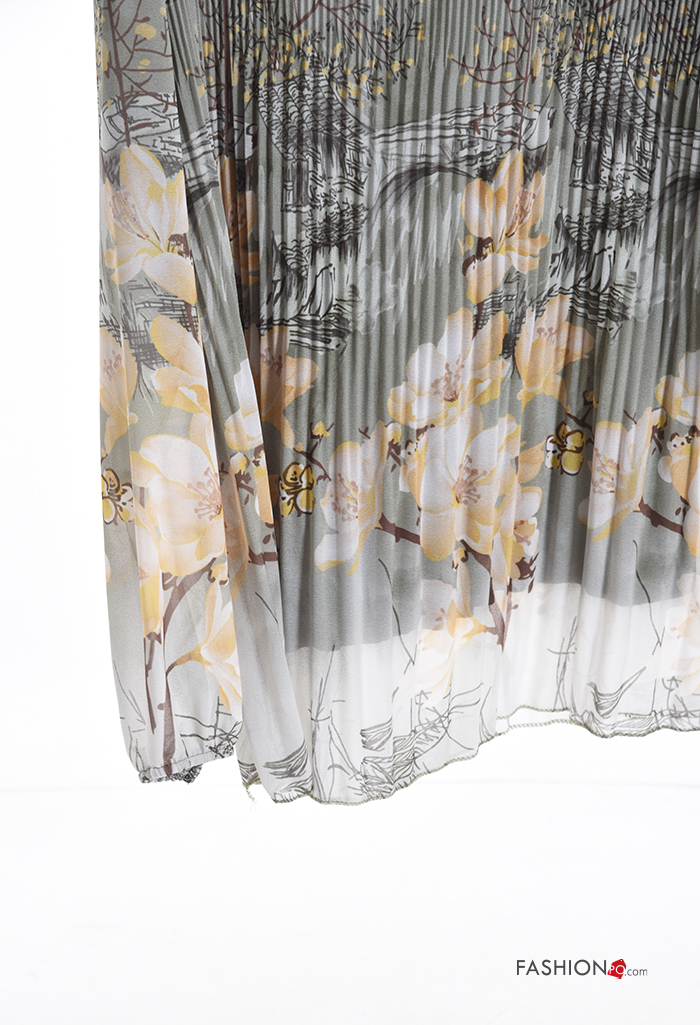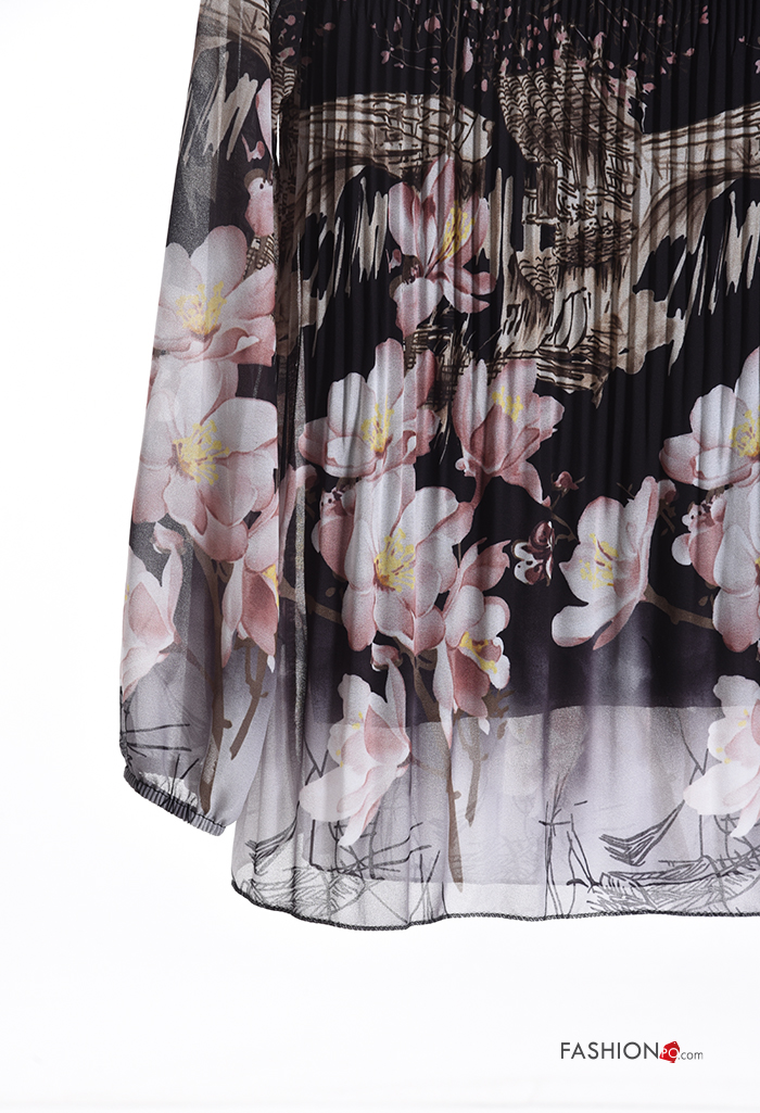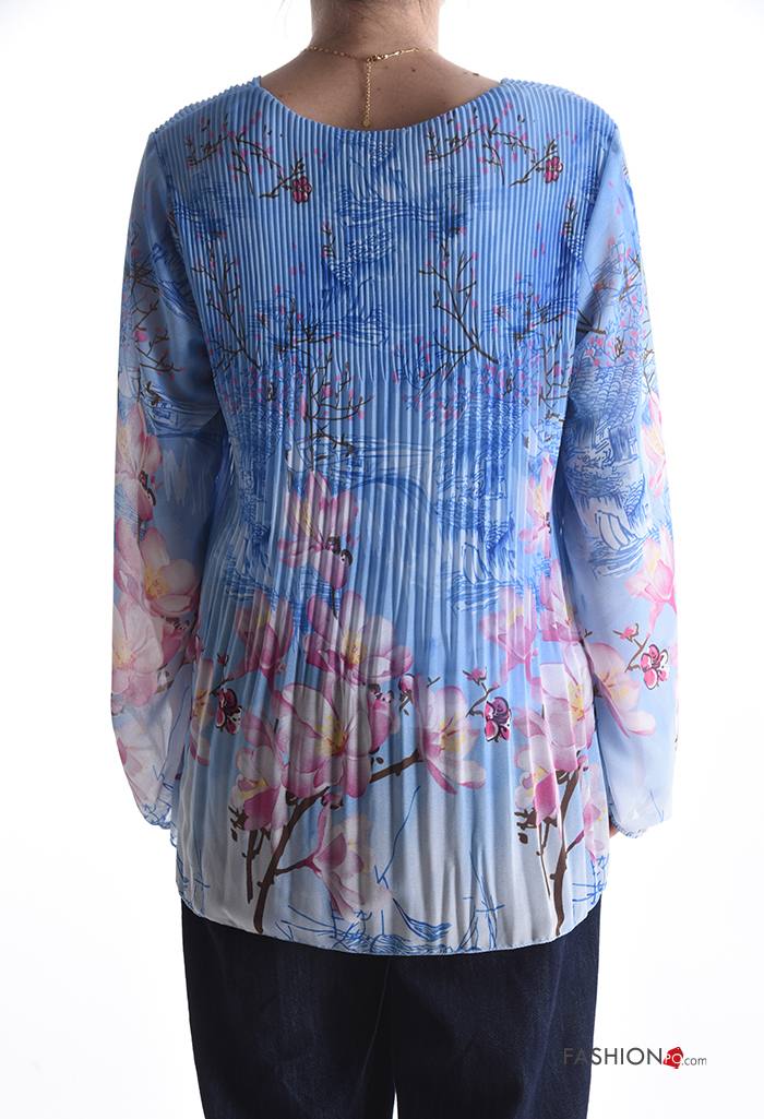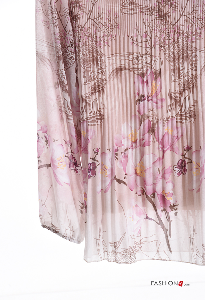 Floral pleated long sleeve Blouse