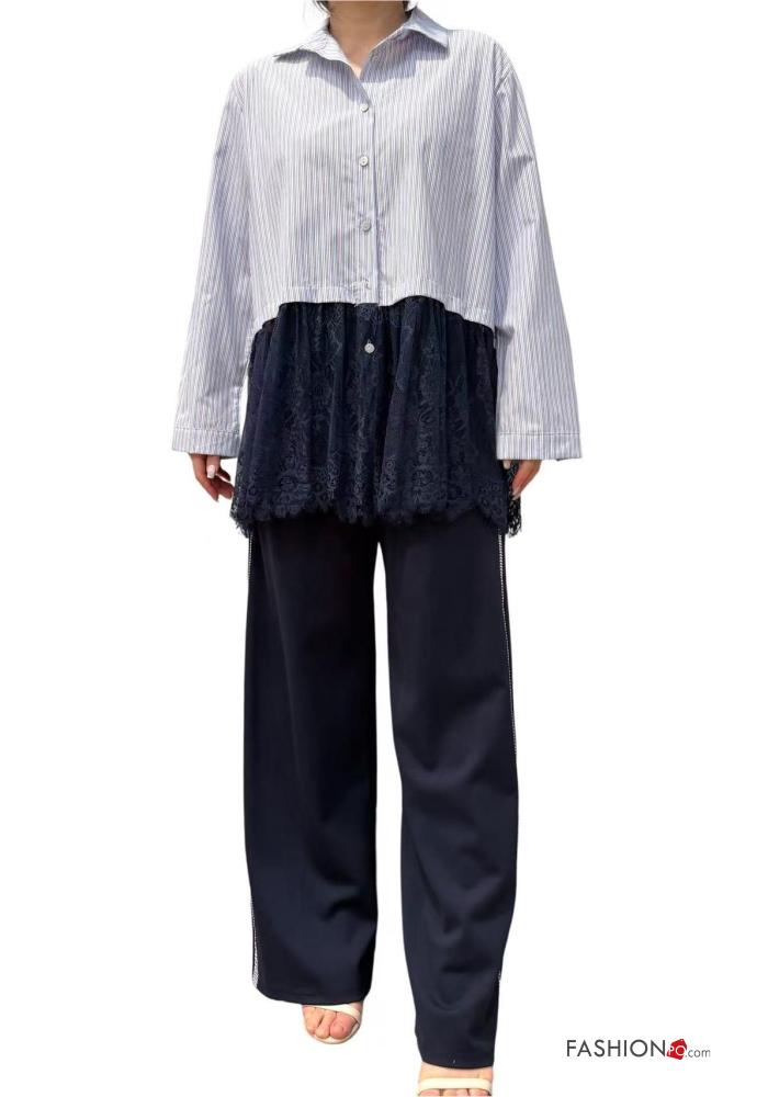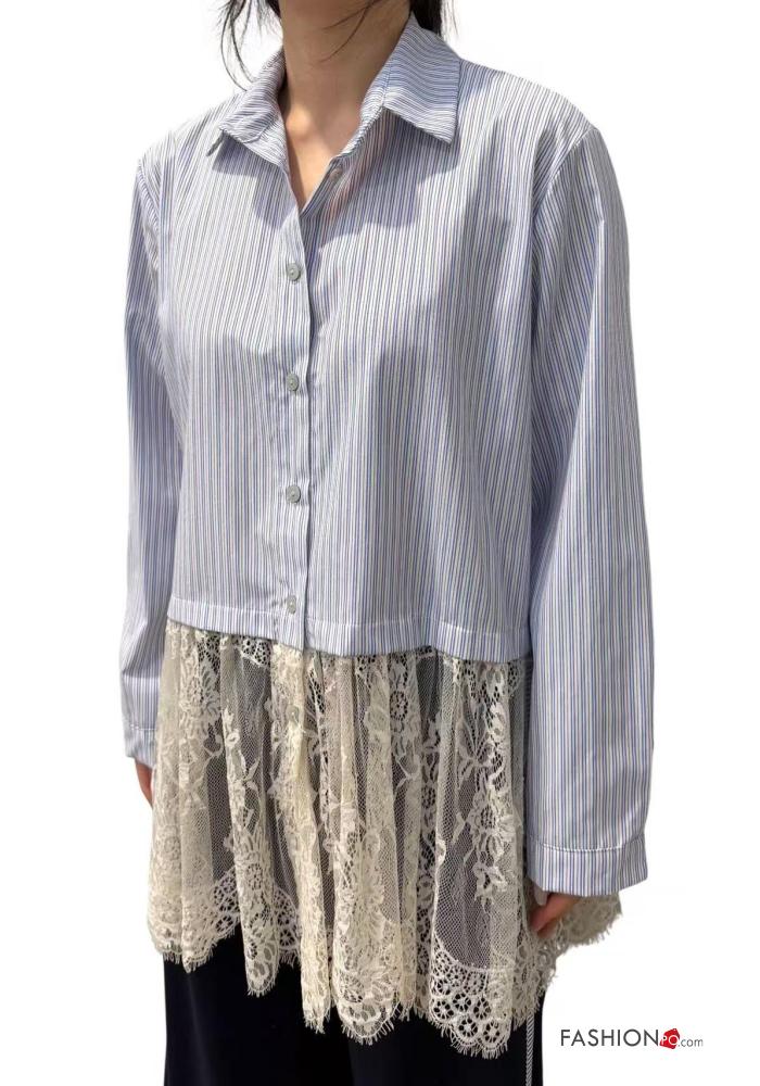 lace trim Cotton Shirt with buttons