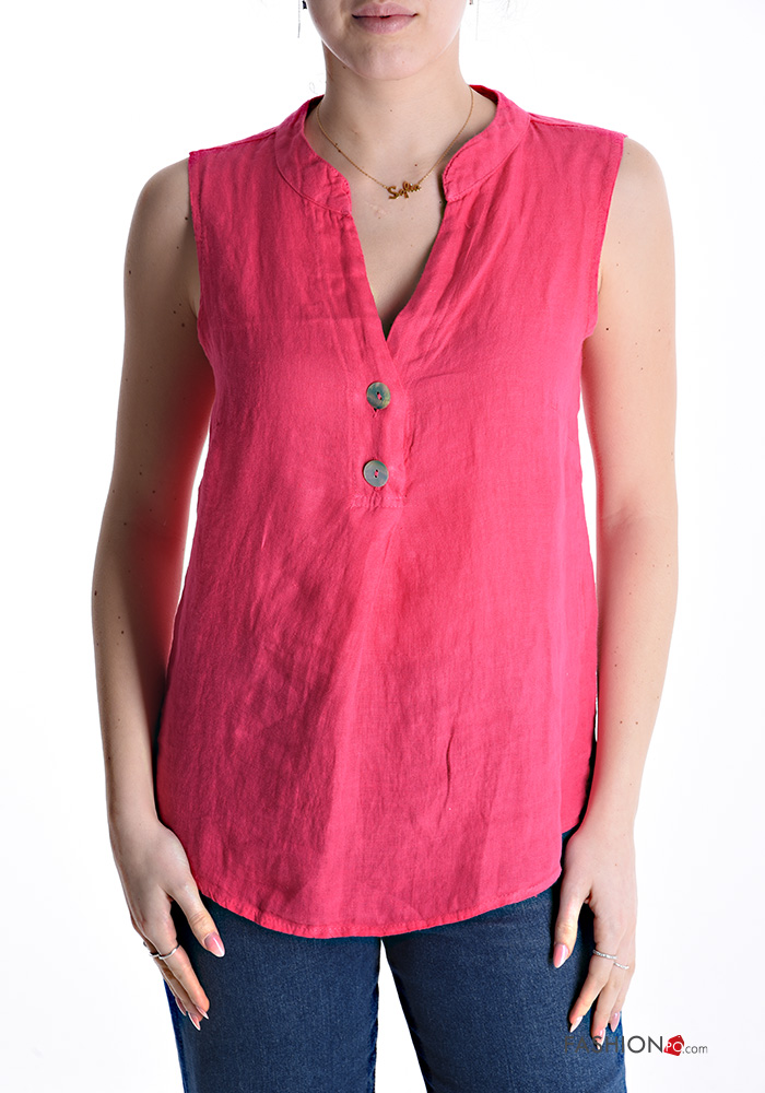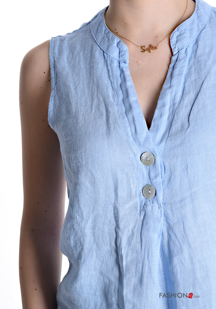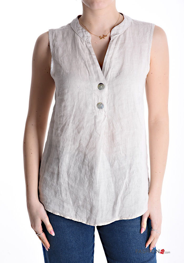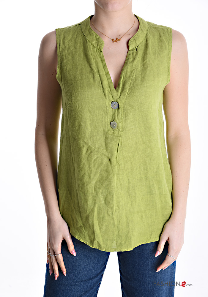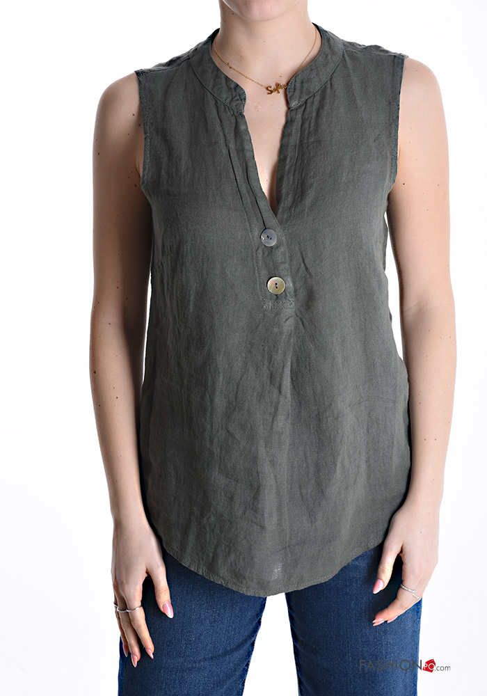 Home > Clothing > Shirts & Blouses > sleeveless Linen Blouse with buttons with v-neck