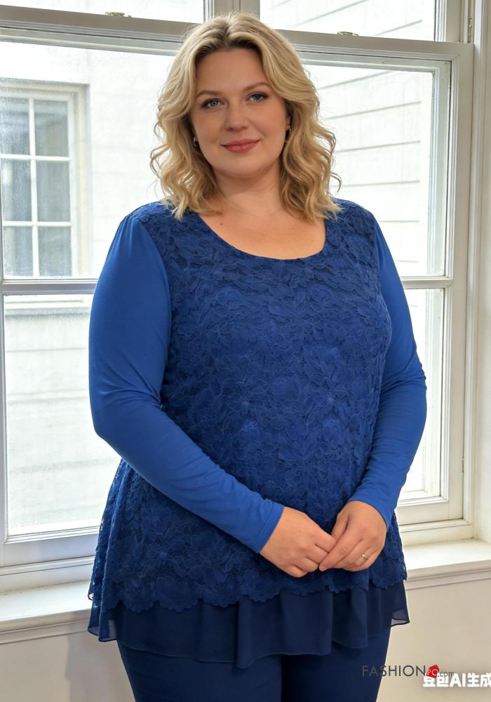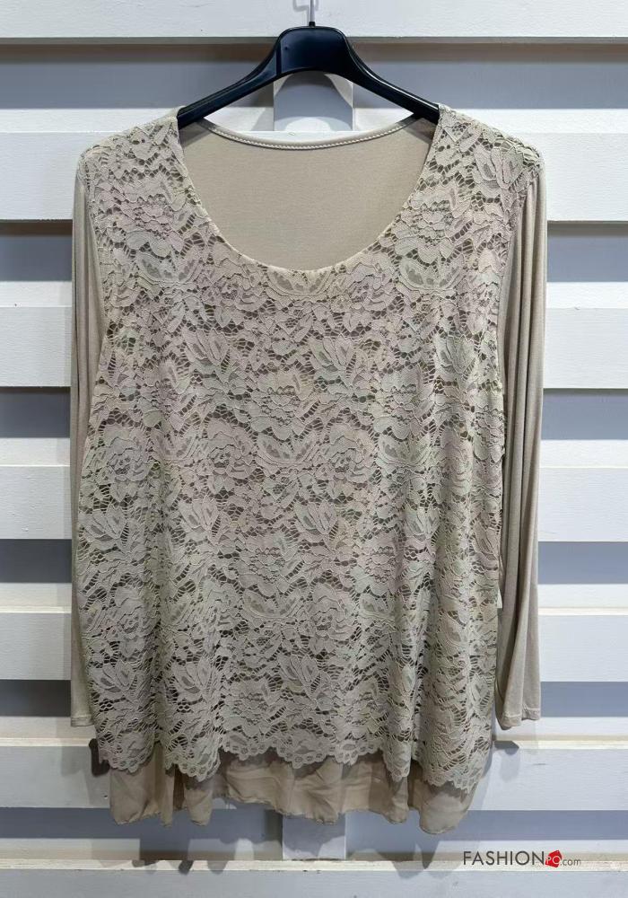 Home > Clothing > Shirts & Blouses > long sleeve crew neck lace trim Blouse with lining