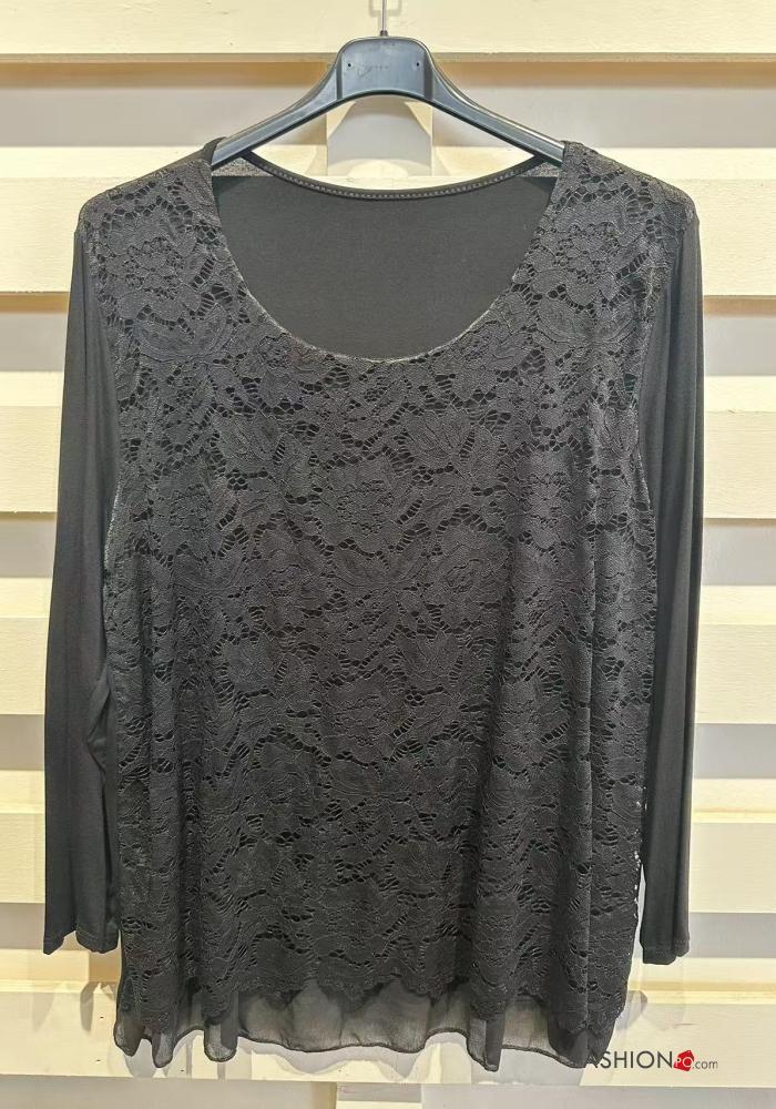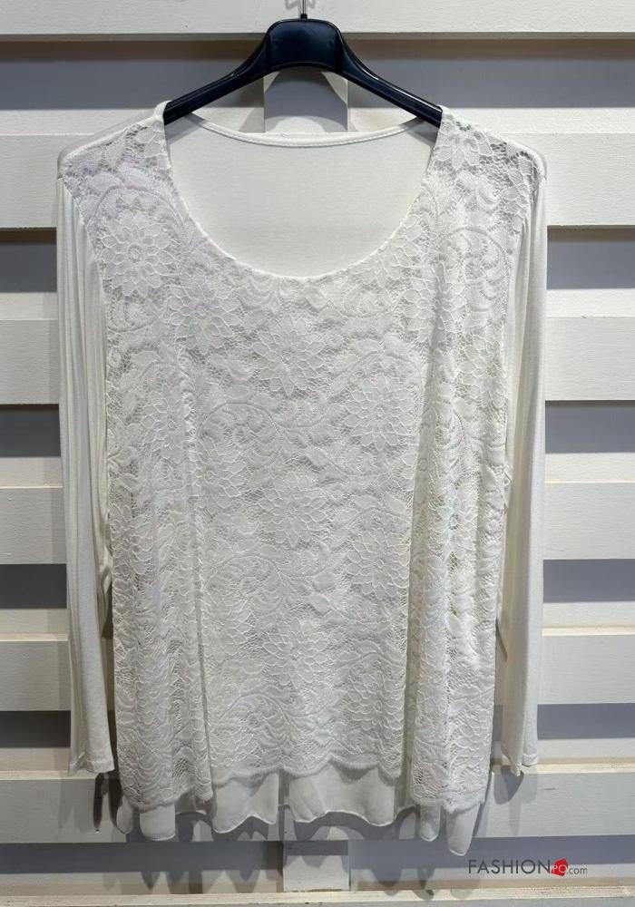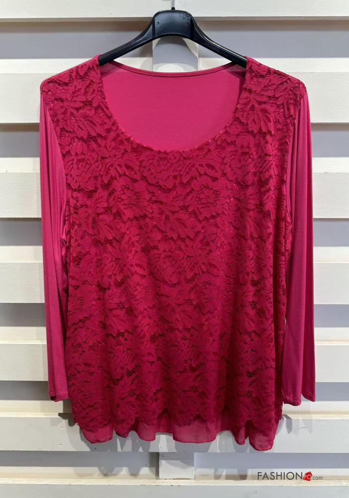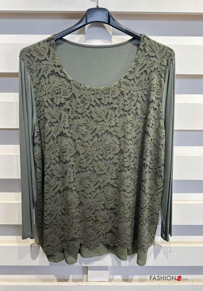 long sleeve crew neck lace trim Blouse with lining
