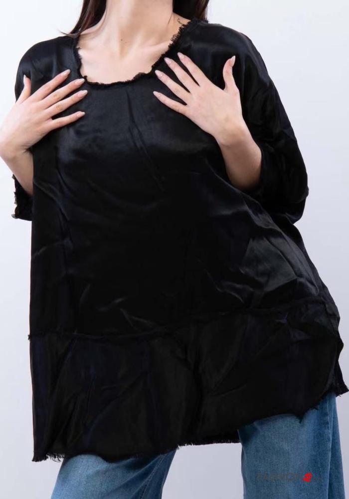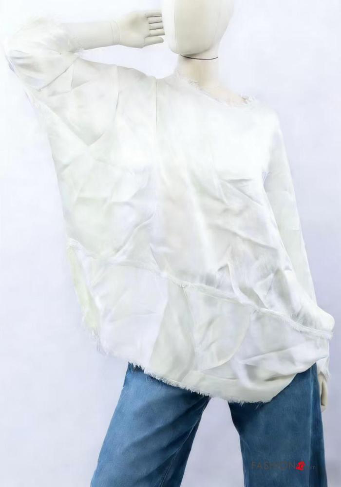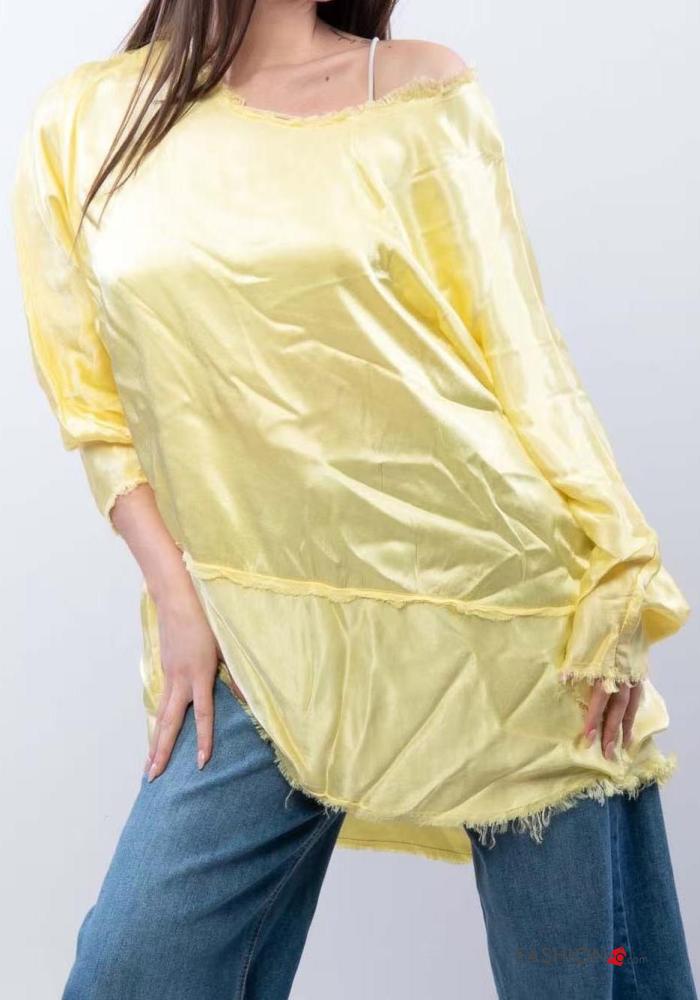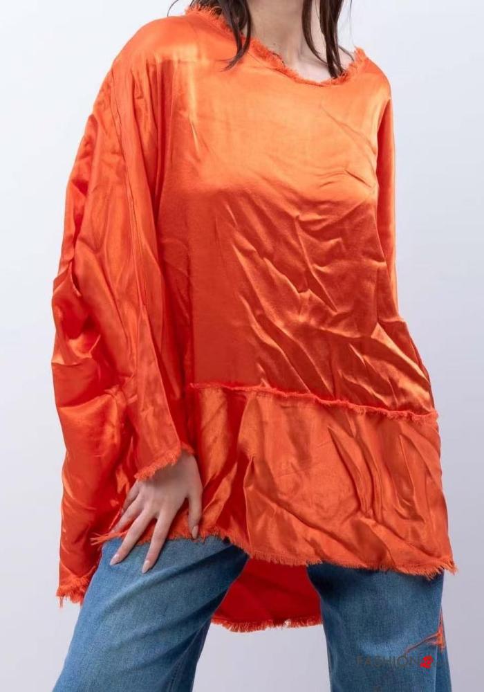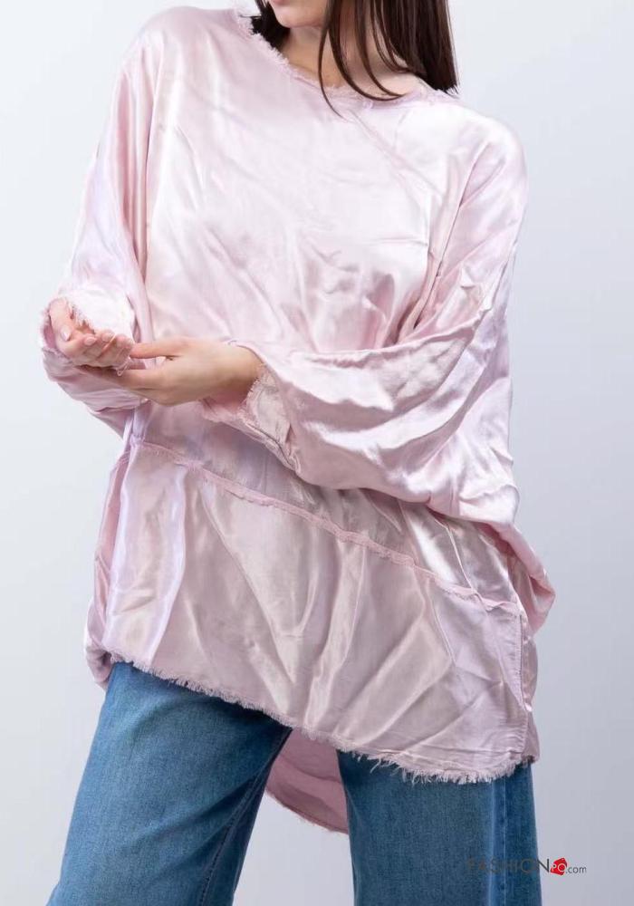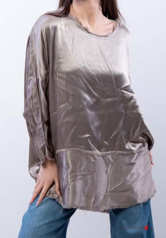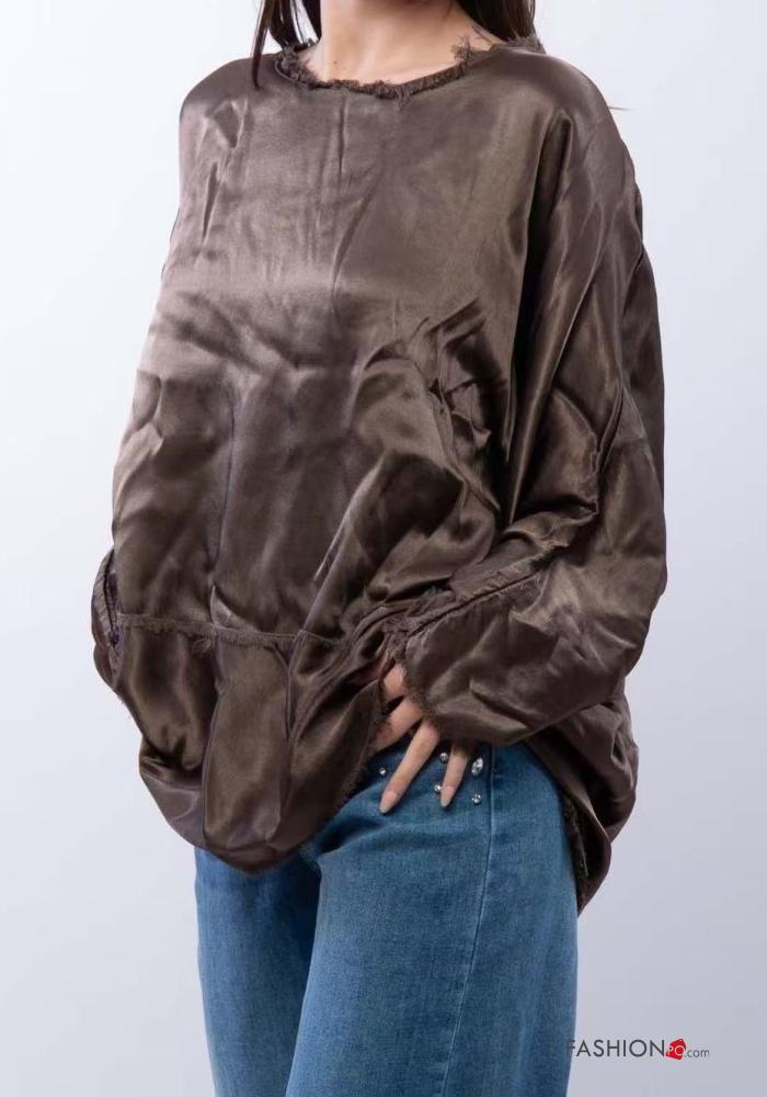 Home > Clothing > Shirts & Blouses > oversized crew neck long sleeve satin Blouse