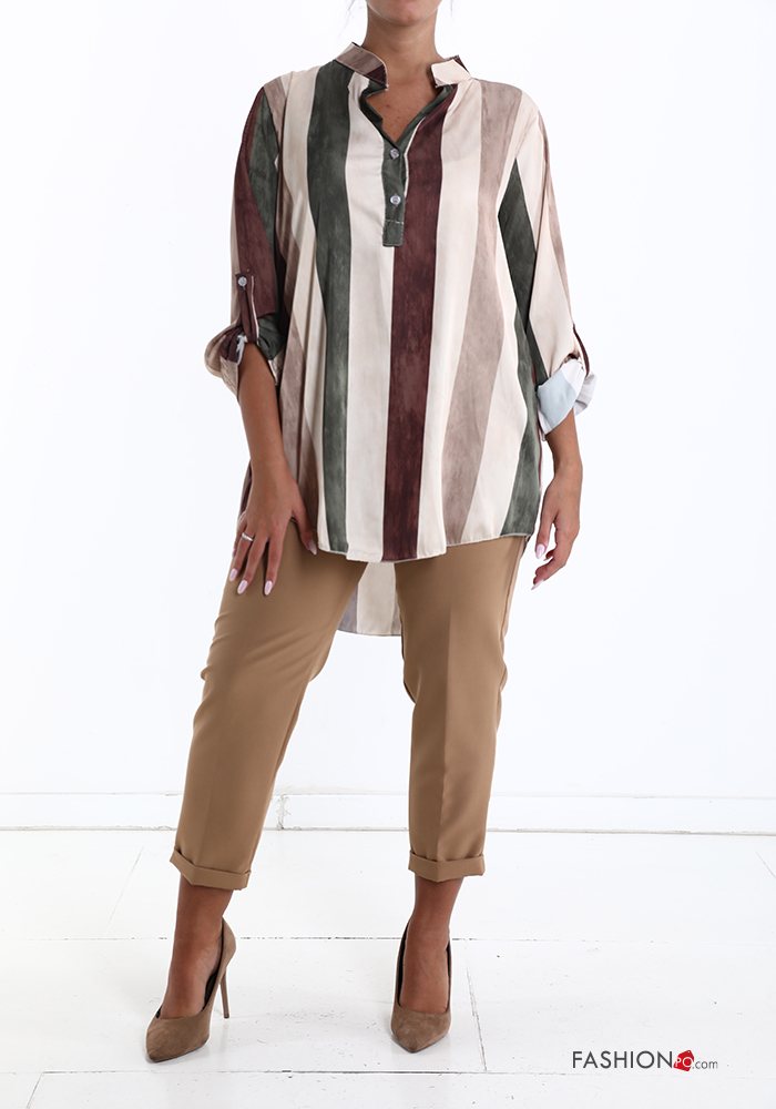Striped asymmetrical Tunic with buttons 3/4 sleeve