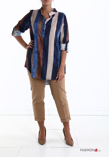 Home > Clothing > Shirts & Blouses > Striped asymmetrical Tunic with buttons 3/4 sleeve