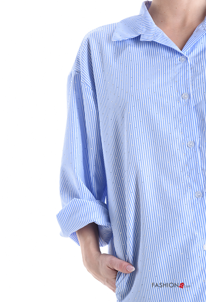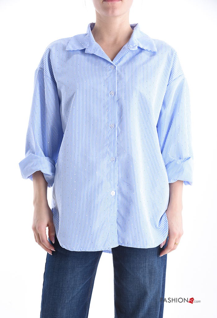 Home > Clothing > Shirts & Blouses > Striped Cotton Shirt with rhinestones