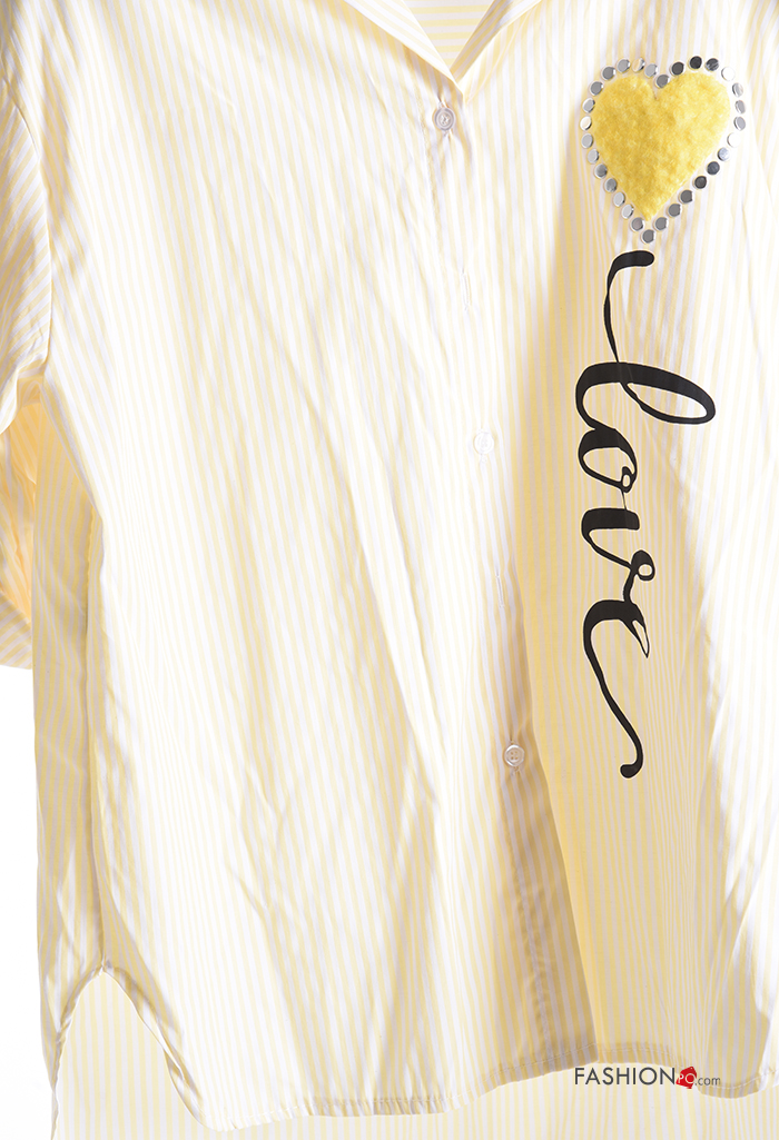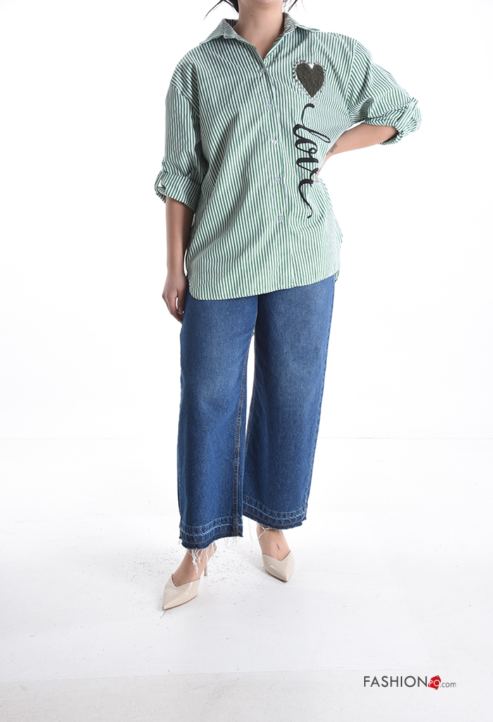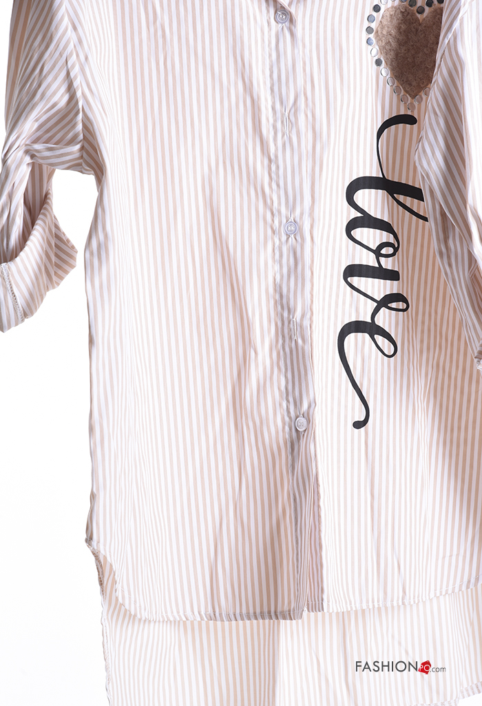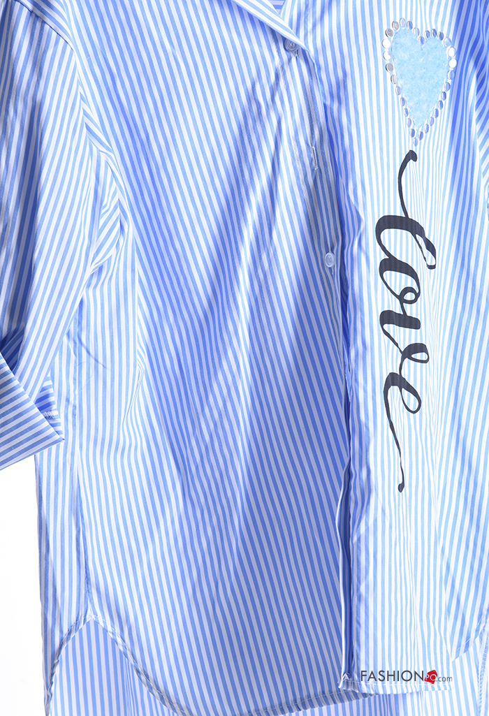 Home > Clothing > Shirts & Blouses > Striped with collar Cotton Shirt with buttons 3/4 sleeve
