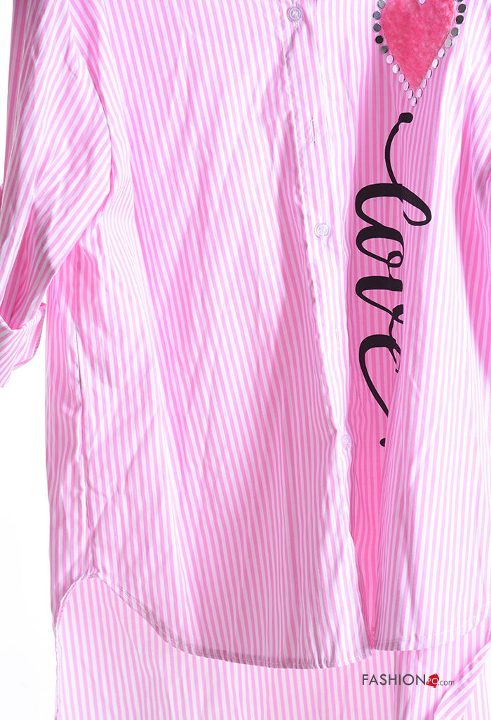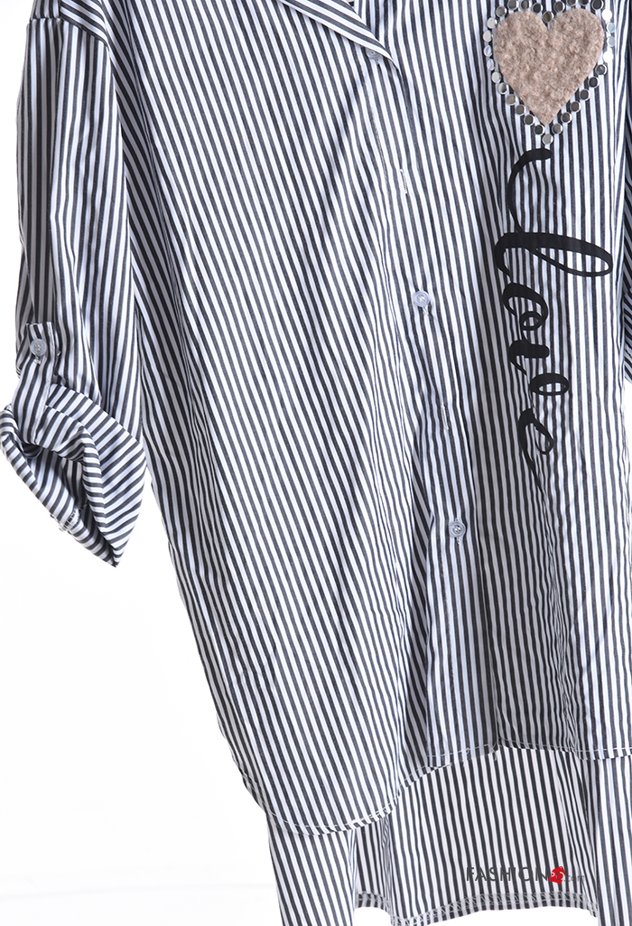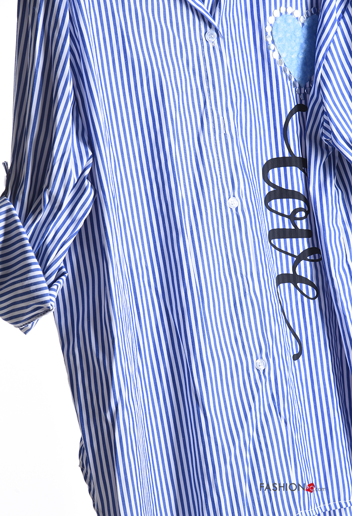 Striped with collar Cotton Shirt with buttons 3/4 sleeve