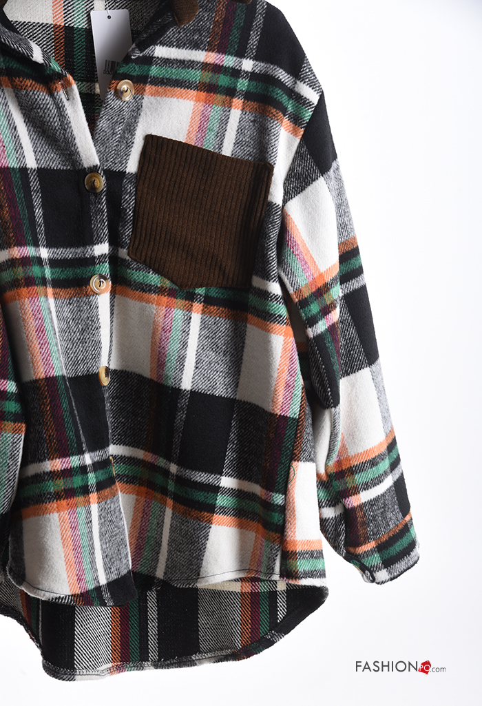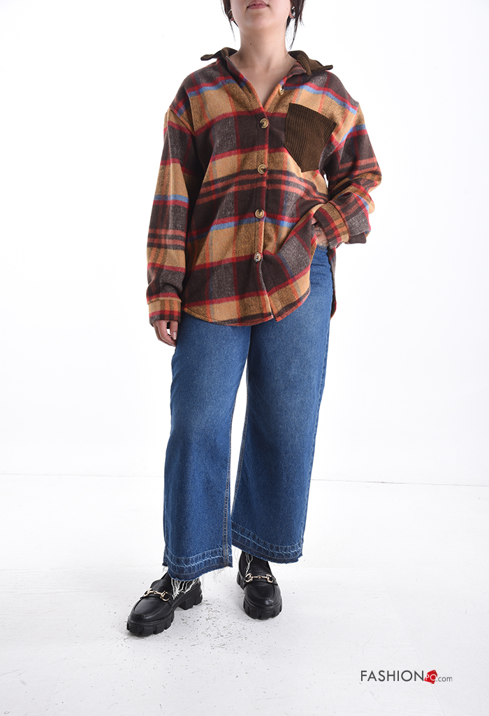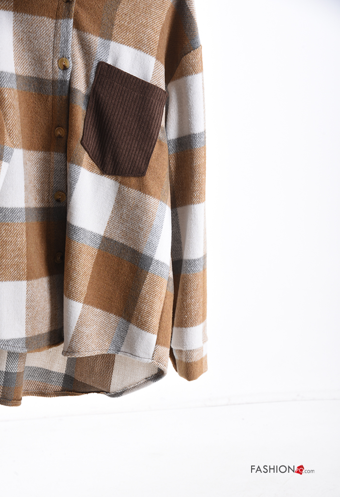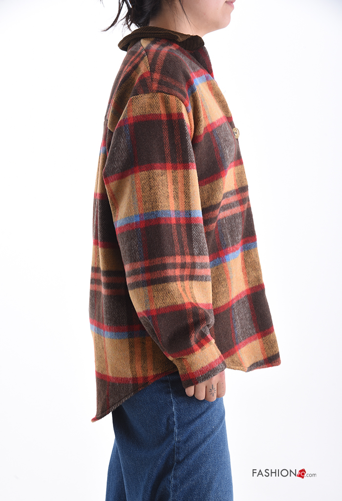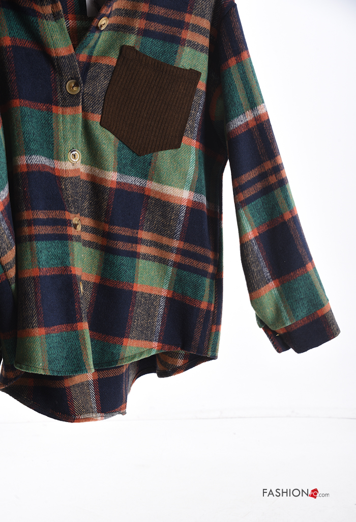 Tartan long sleeve with collar Cotton Shirt with buttons