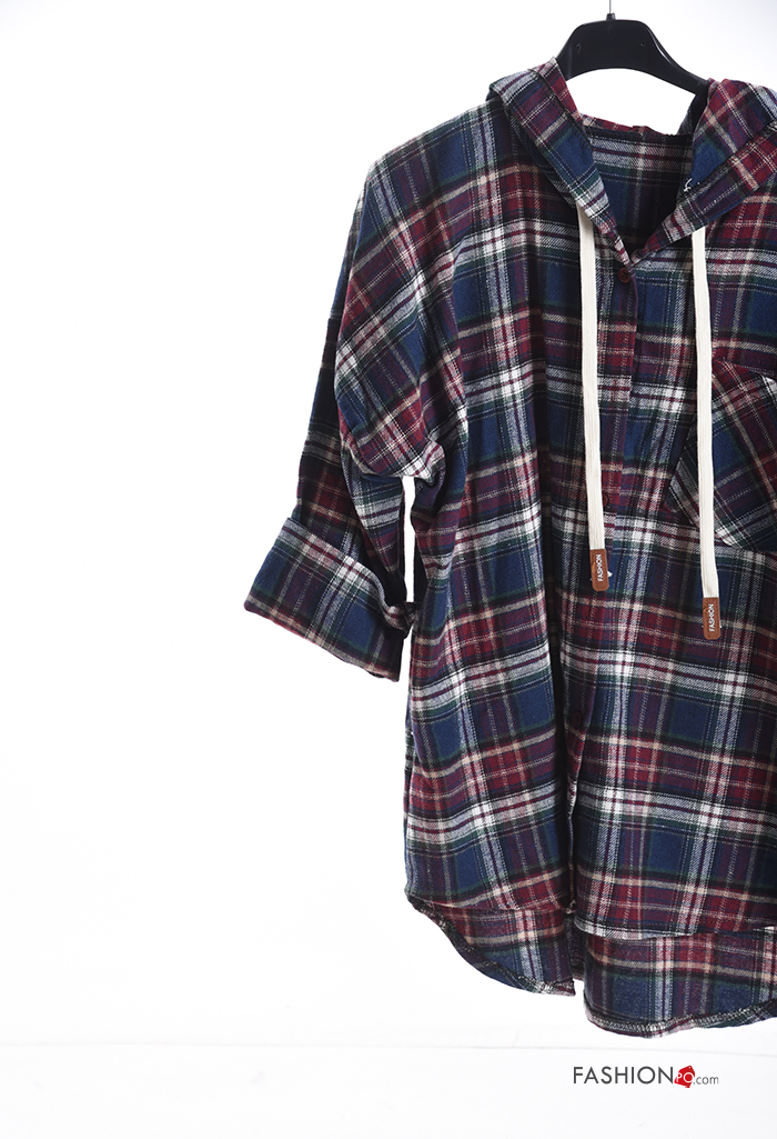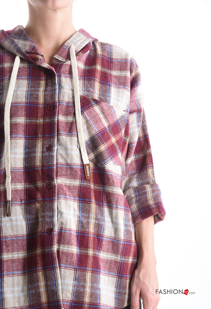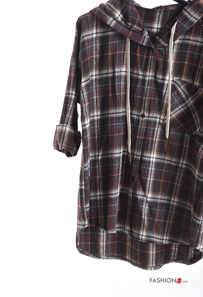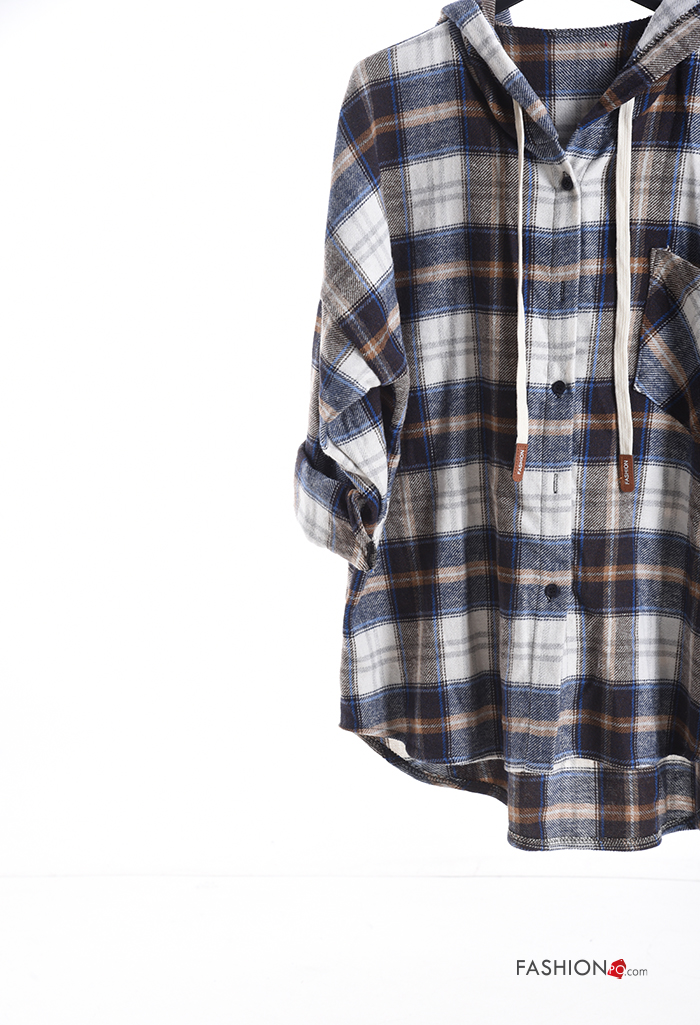 Home > Clothing > Shirts & Blouses > Tartan Wool Mix Shirt with buttons with drawstring with hood