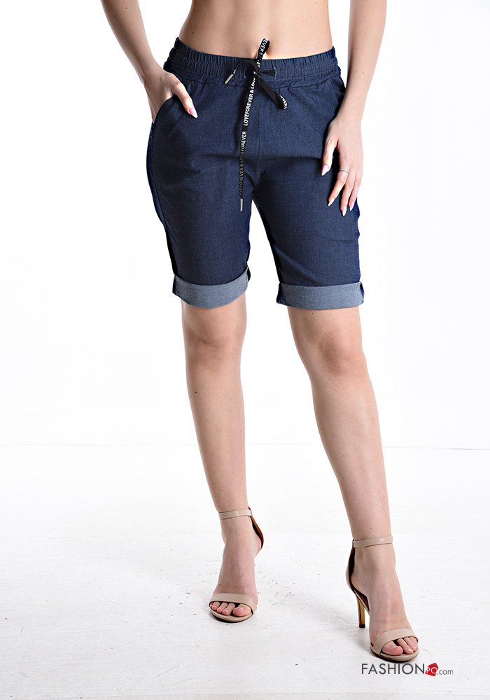 skinny Cotton Bermuda with drawstring with elastic with pockets