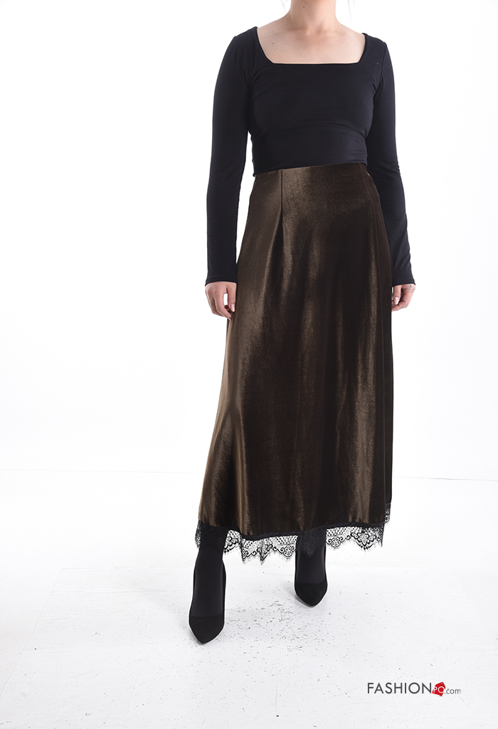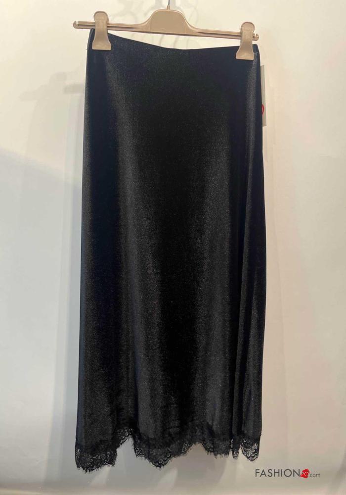 Home > Clothing > Skirts > lace trim Velvet Skirt with elastic