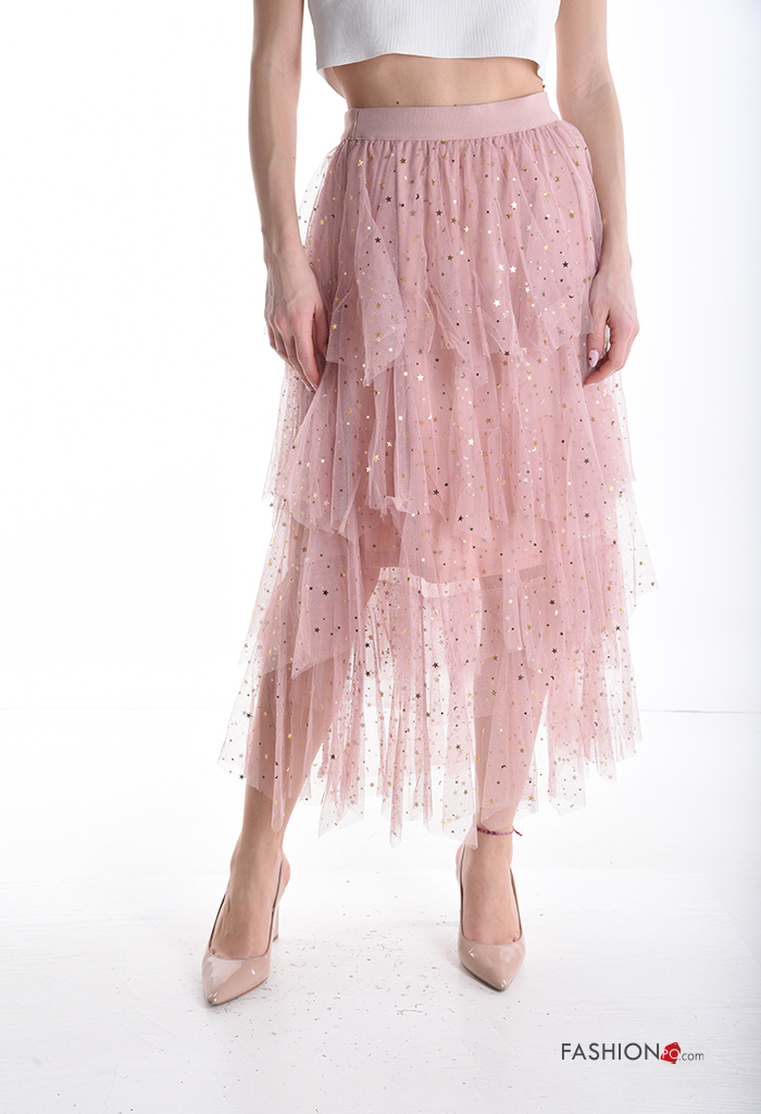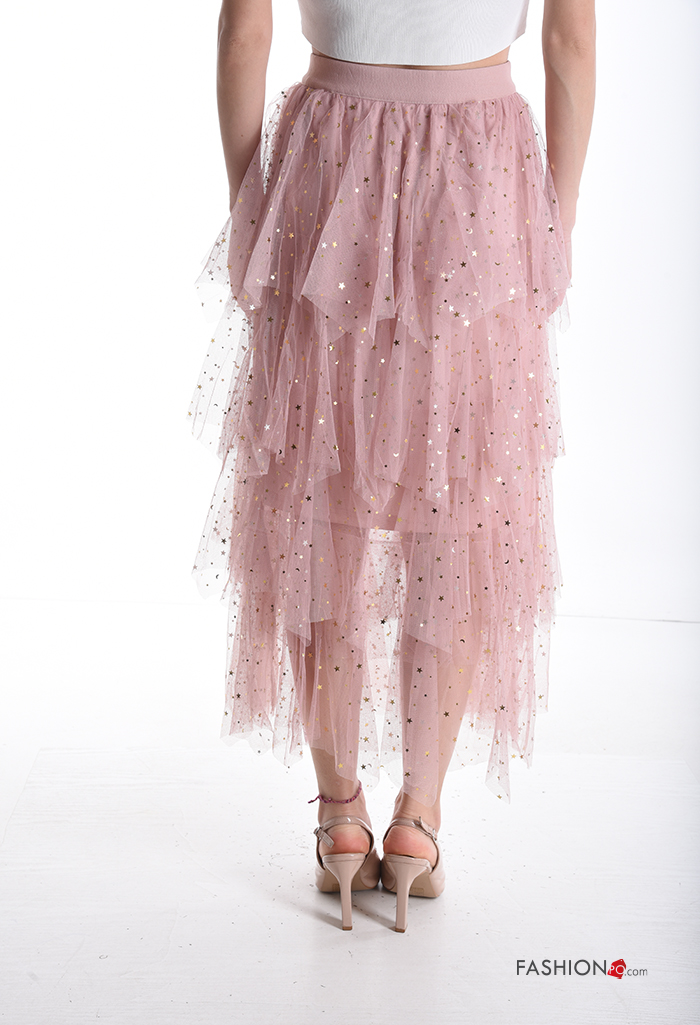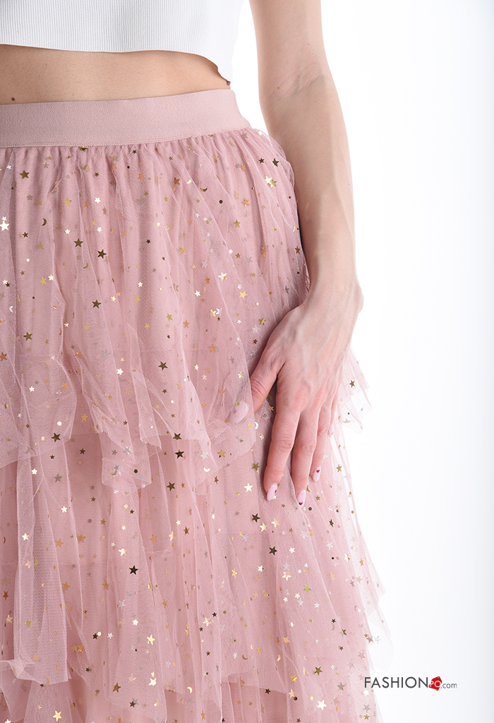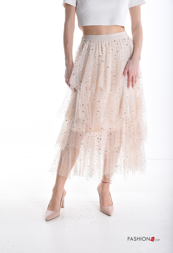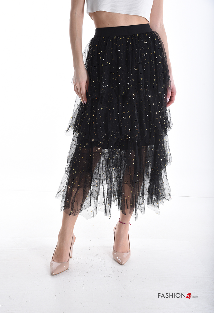 Home > Clothing > Skirts > tulle Cotton Skirt with sequins with elastic with flounces