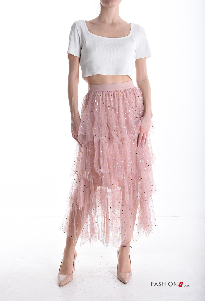tulle Cotton Skirt with sequins with elastic with flounces