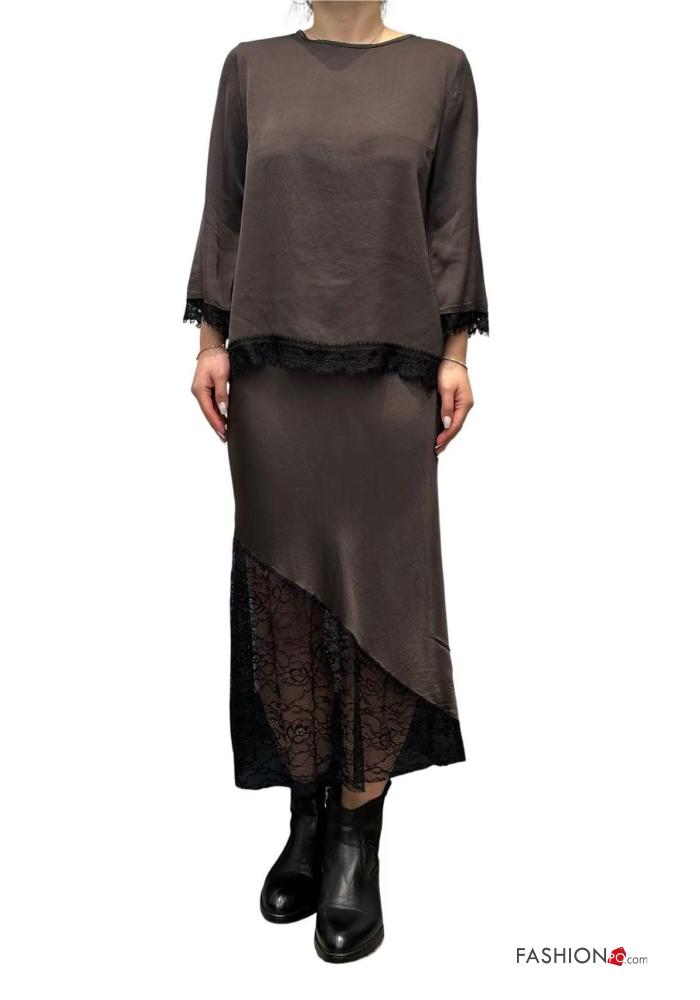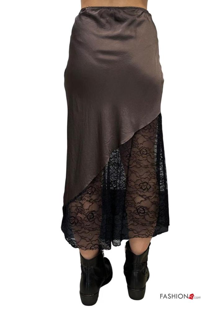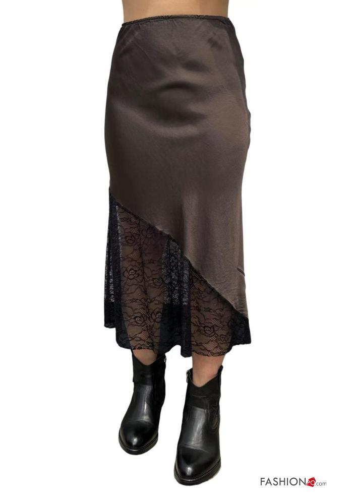 lace trim satin Skirt with elastic