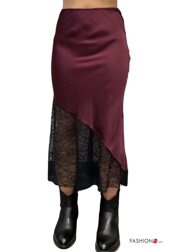 Home > Clothing > Skirts > lace trim satin Skirt with elastic