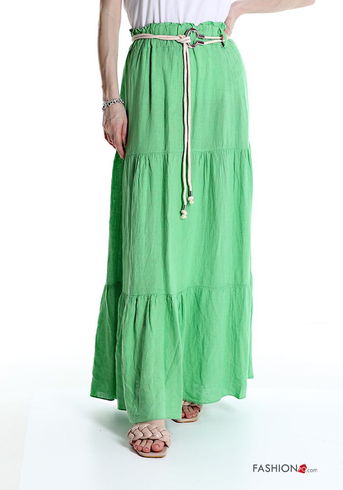 Home > Clothing > Skirts > Longuette Linen Skirt with belt with flounces