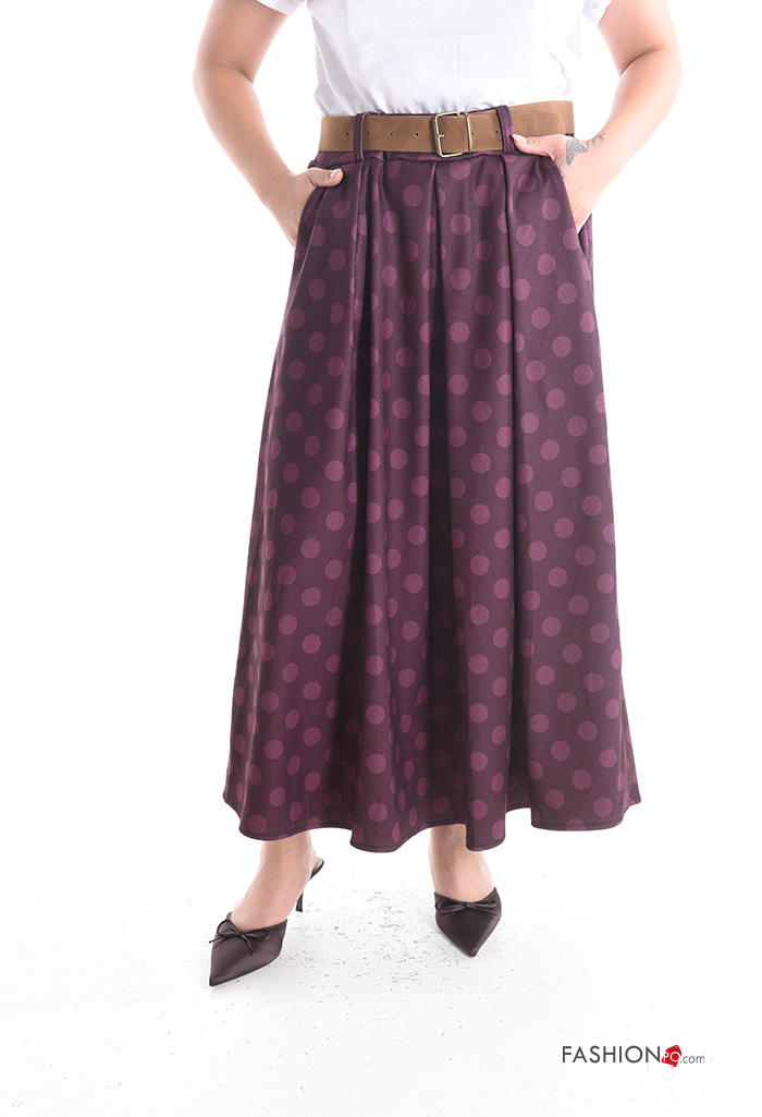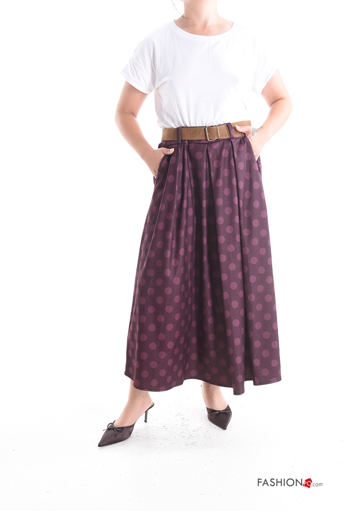 Home > Clothing > Skirts > Polka-dot full Skirt with belt with pockets