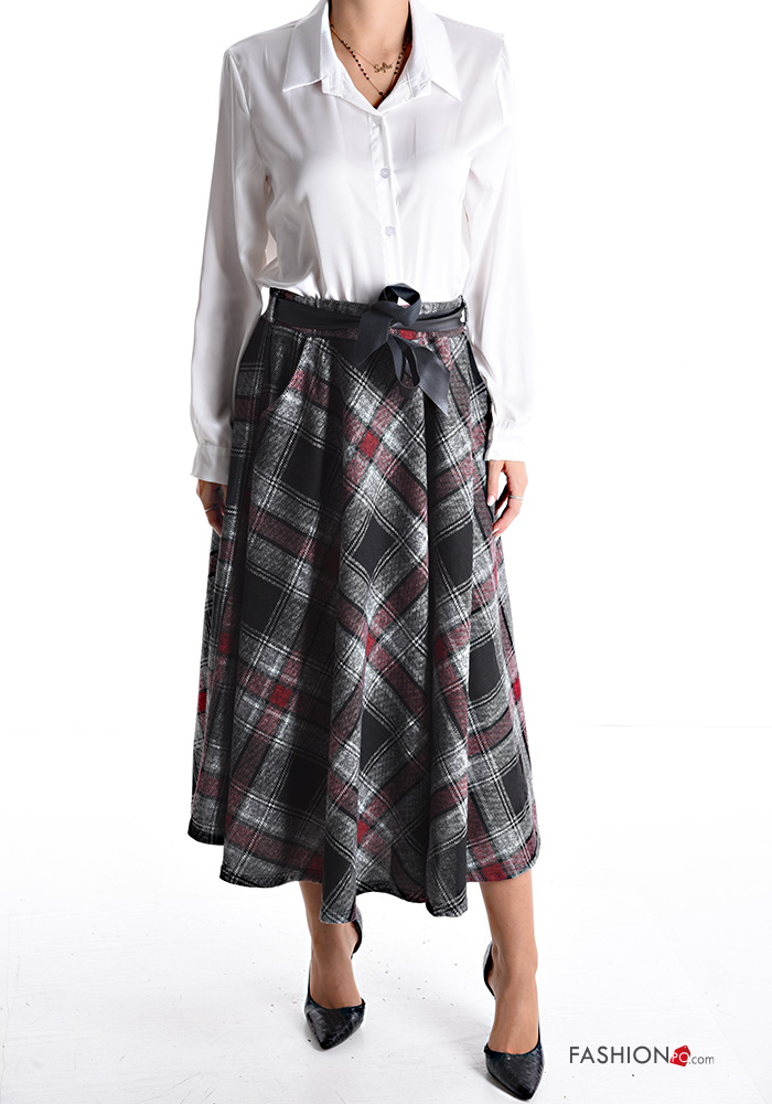 Home > Clothing > Skirts > Tartan Longuette Skirt with belt with elastic with pockets