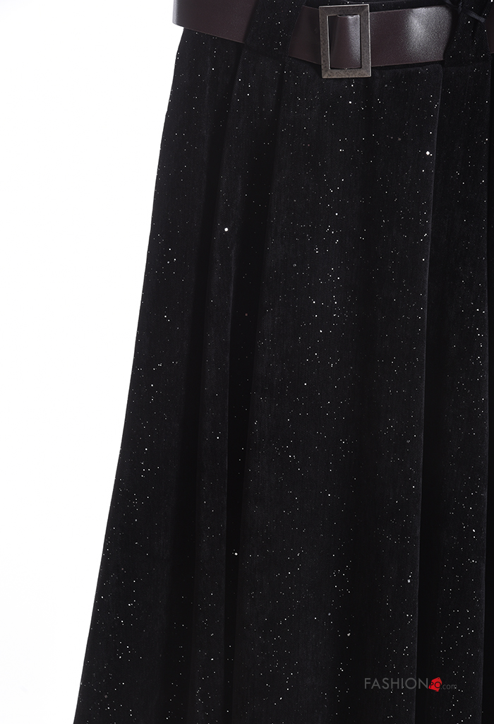 Home > Clothing > Skirts > Velvet Longuette Skirt with belt with pockets with sequins