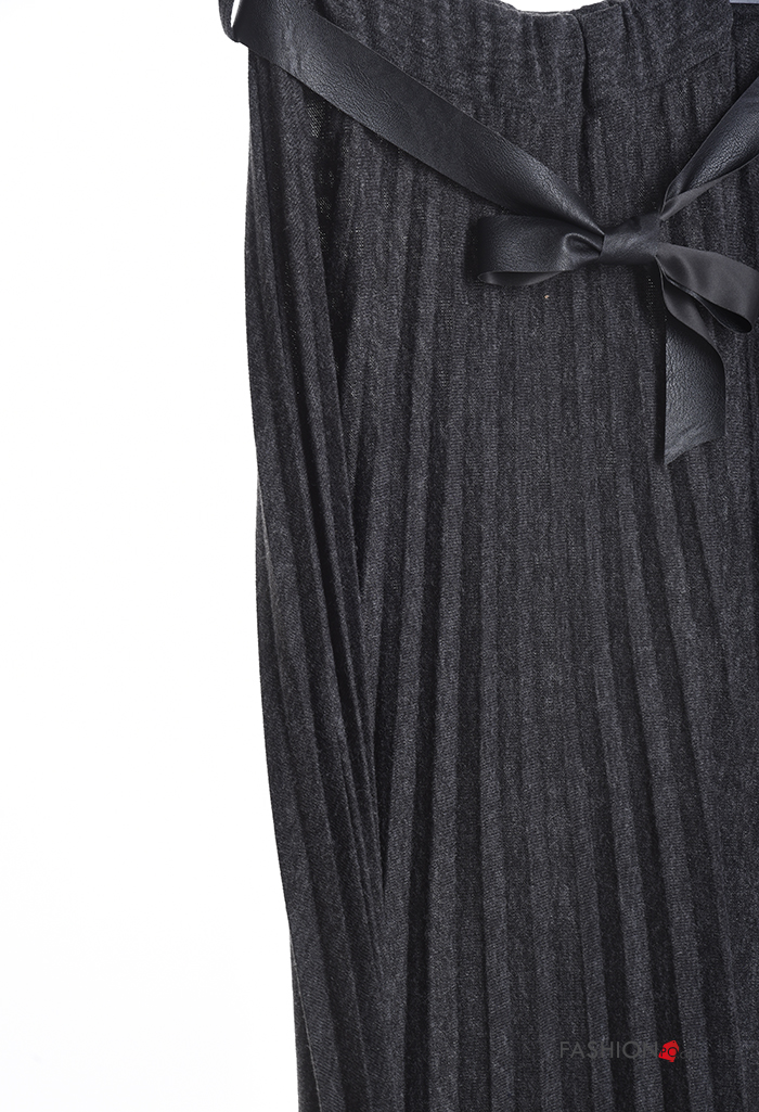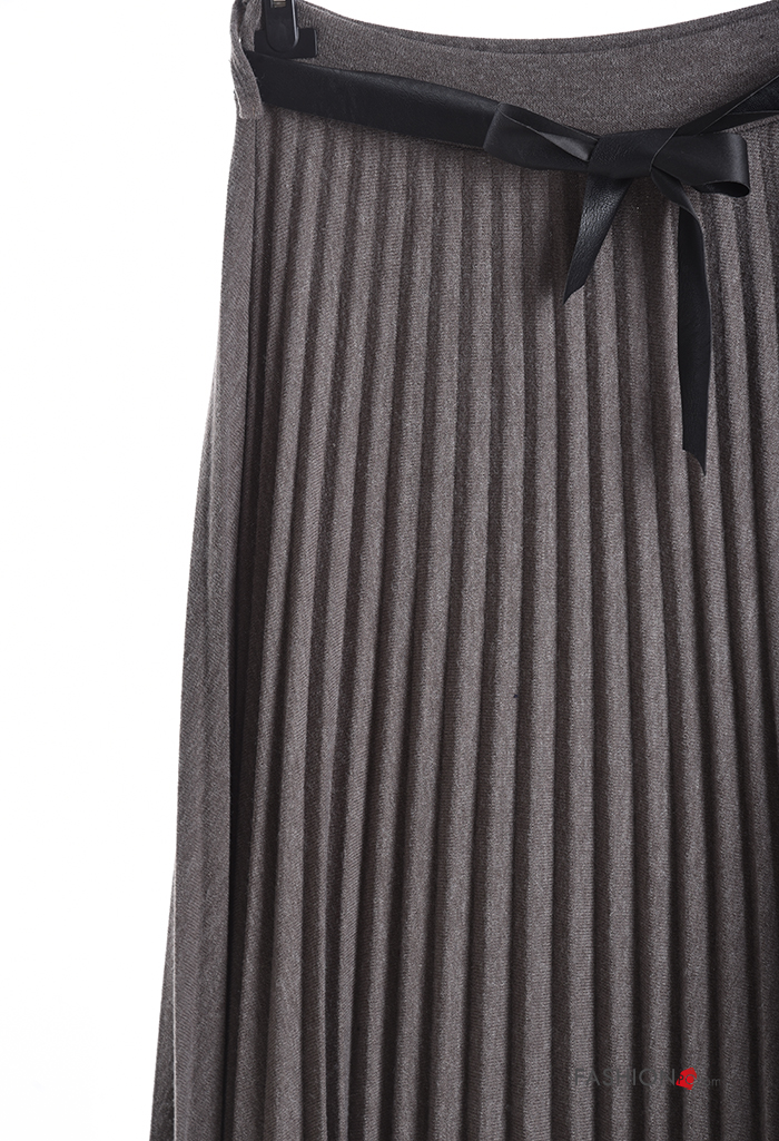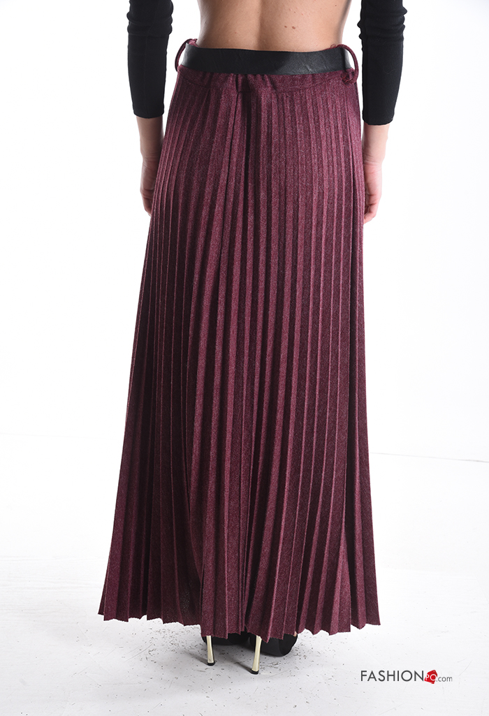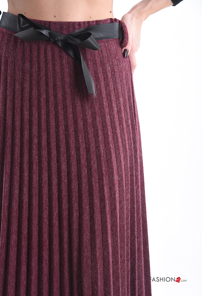 pleated Wool Mix Skirt with belt with elastic