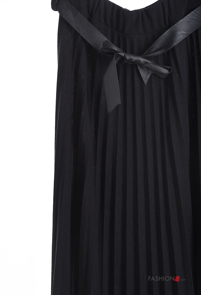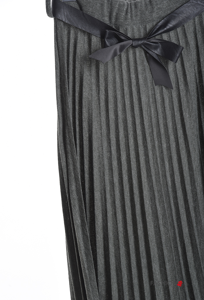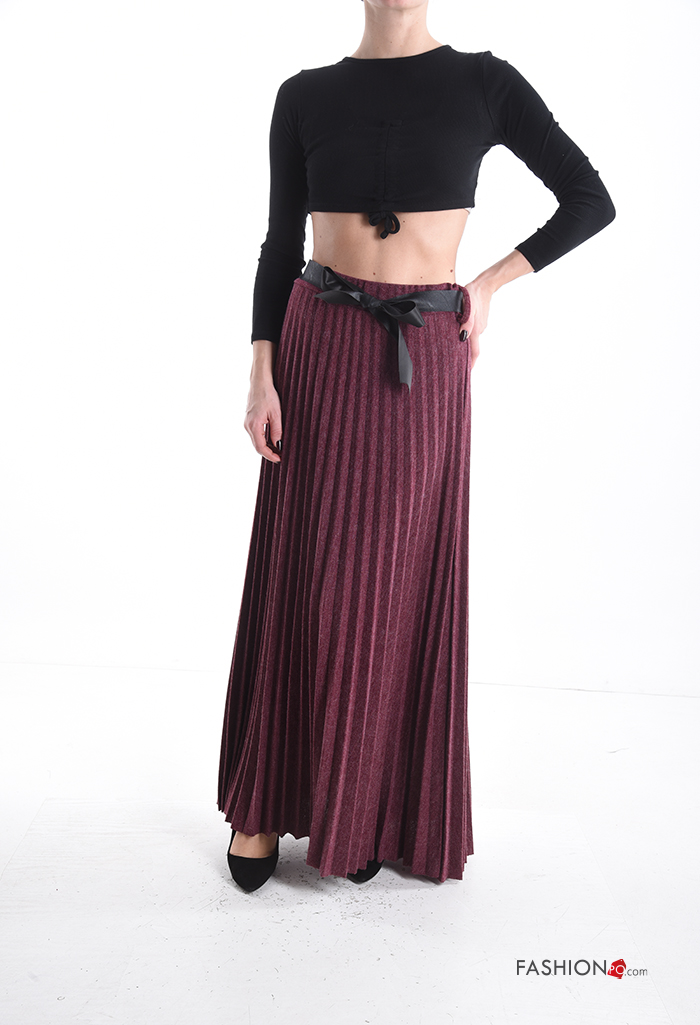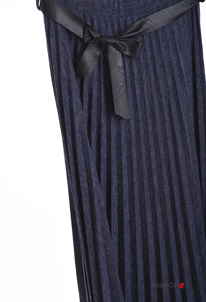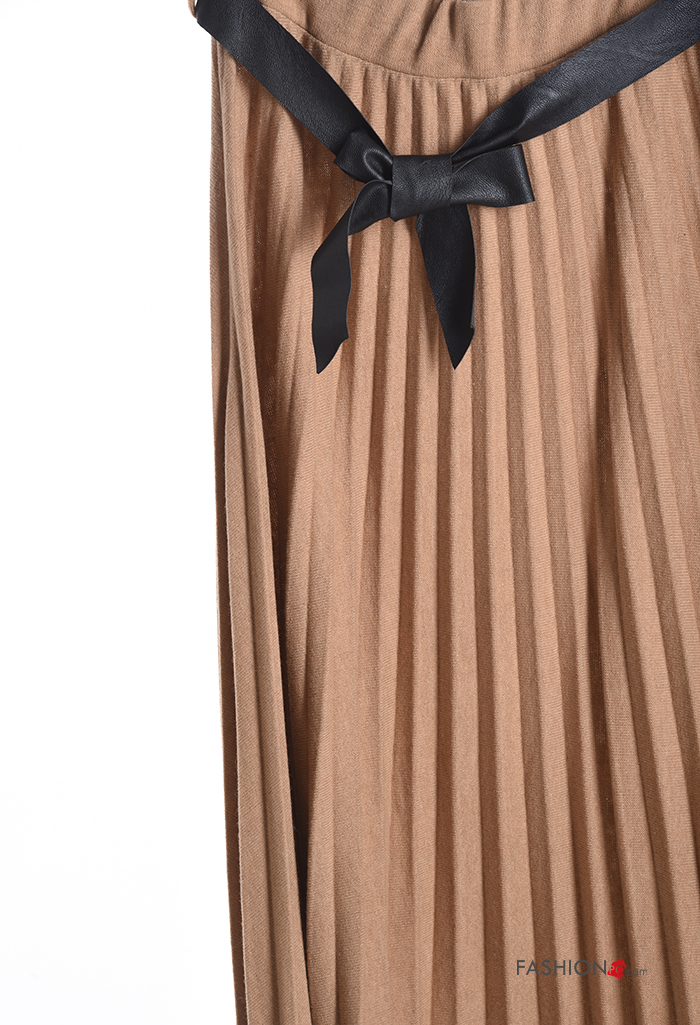 pleated Wool Mix Skirt with belt with elastic