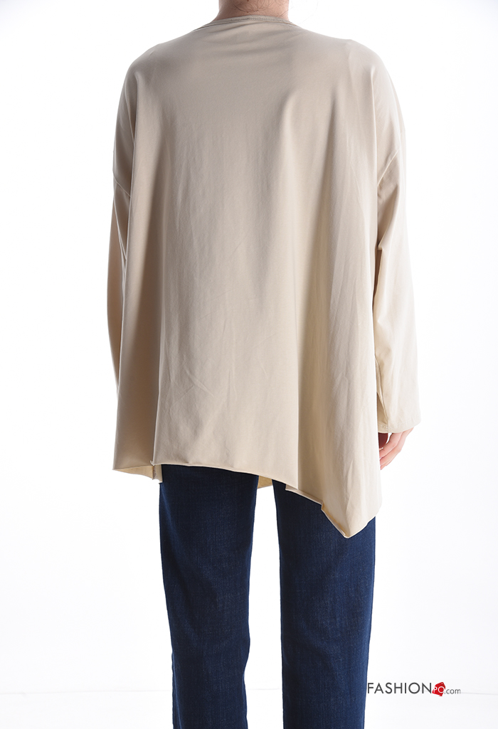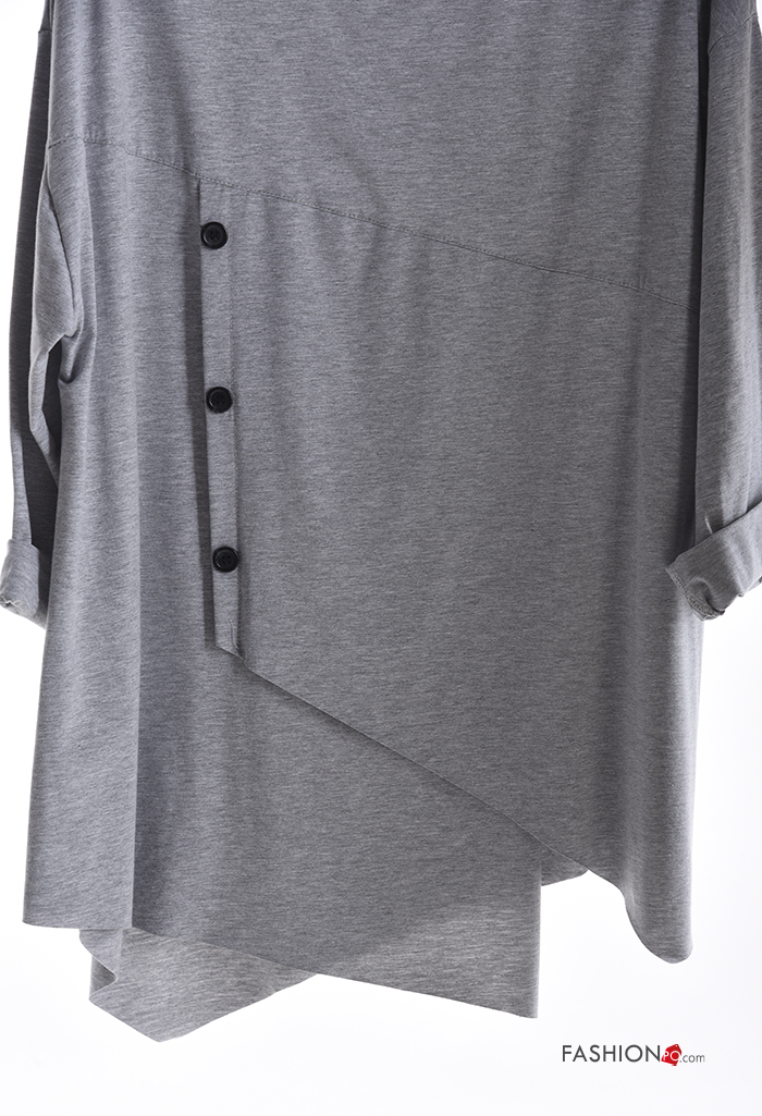 Home > Clothing > T-shirts & Tops > asymmetrical Cotton Long sleeved top with buttons