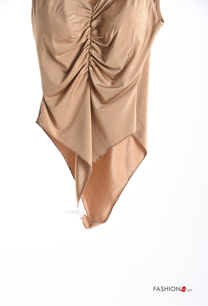 sleeveless Bodysuit with v-neck with rhinestones