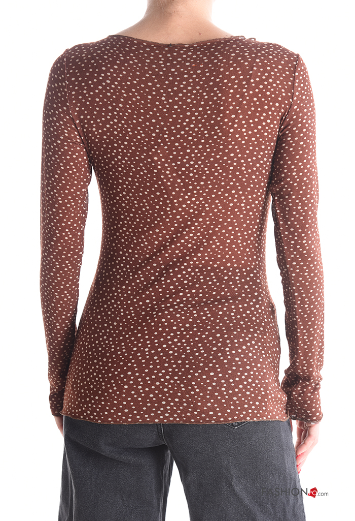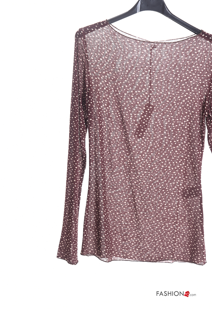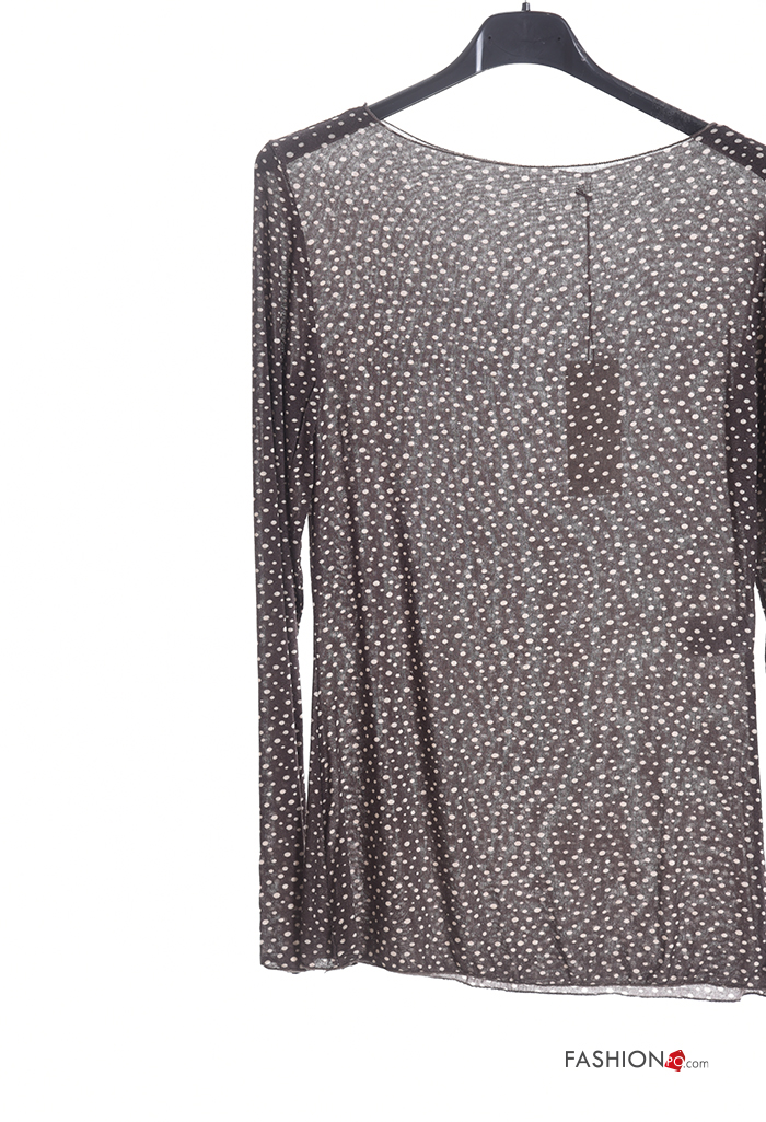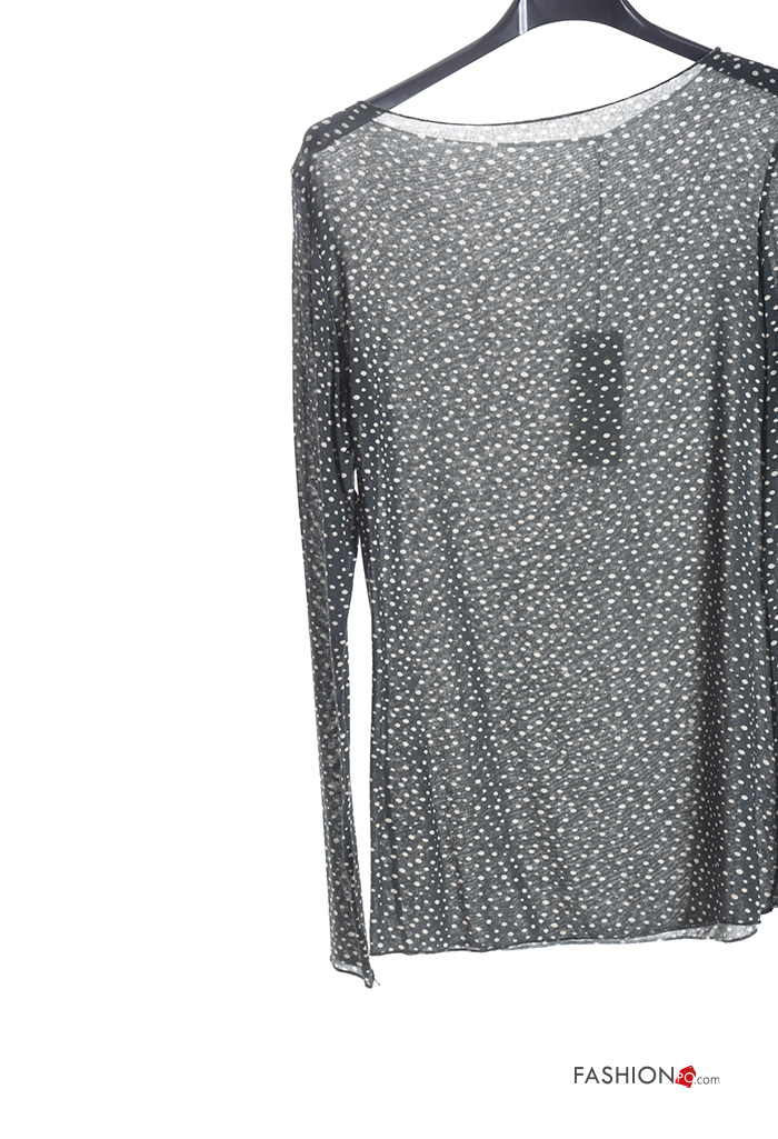 Polka-dot Cashmere Blend Long sleeved top boat neckline