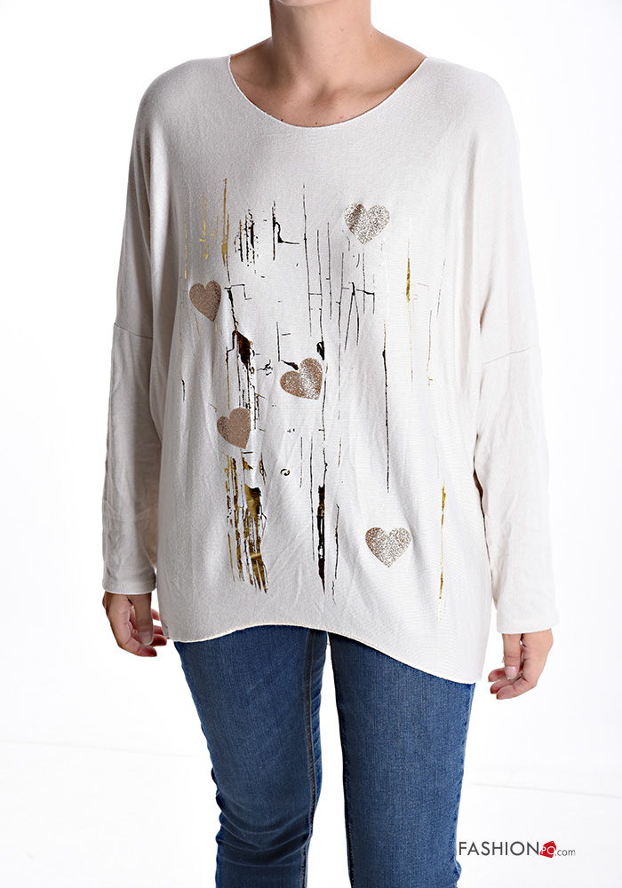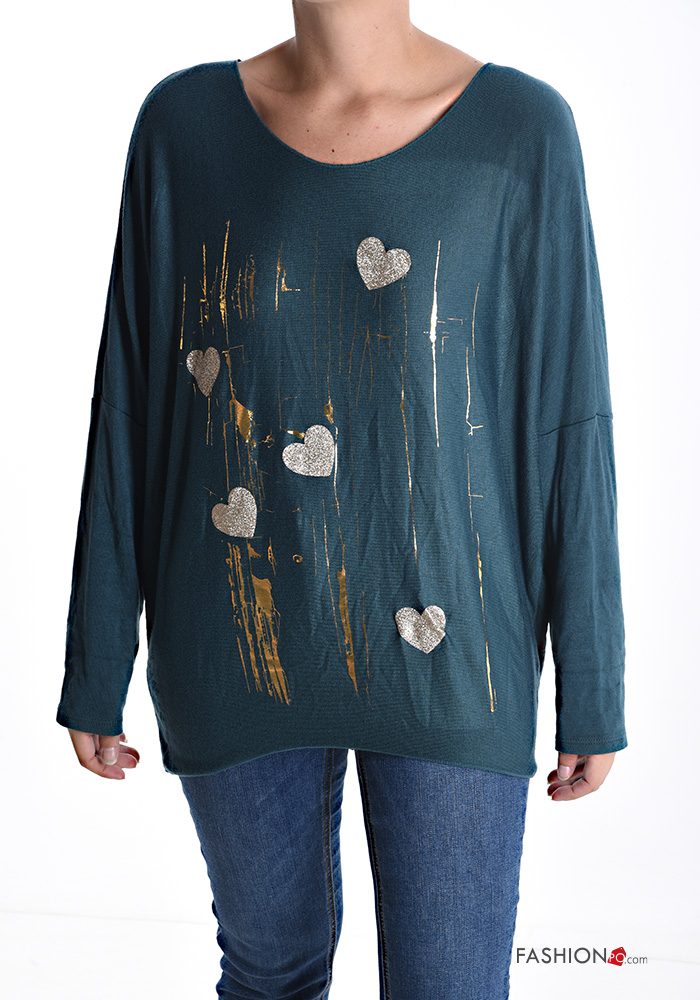 Home > Clothing > T-shirts & Tops > heart motif Long sleeved top with v-neck
