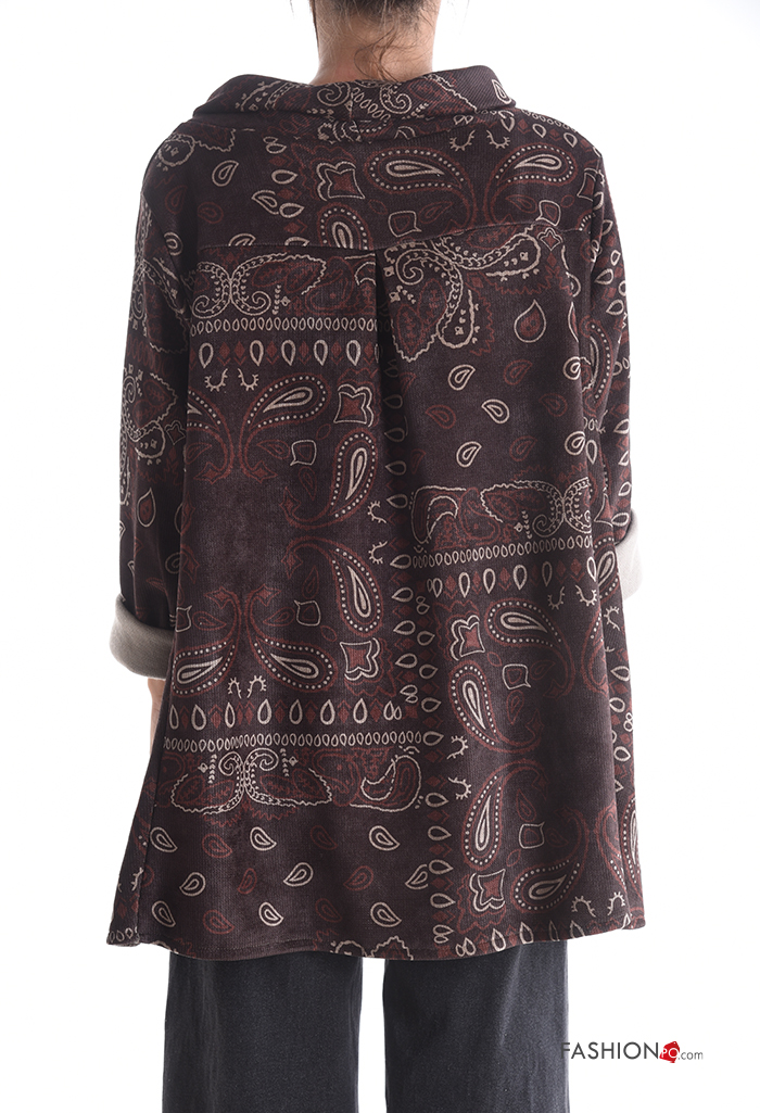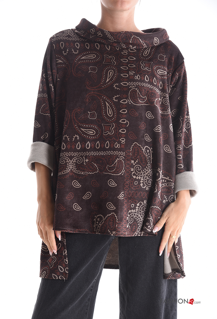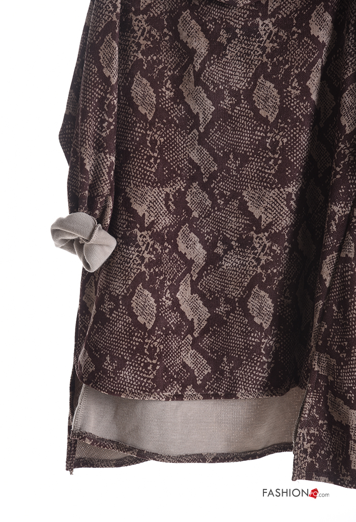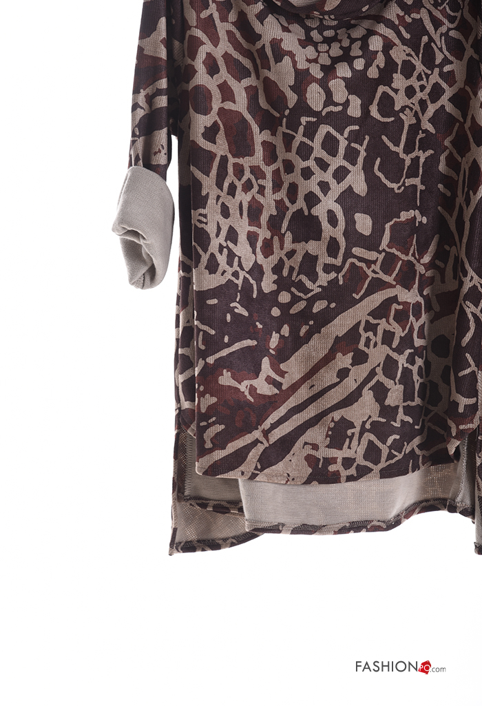 Graphic Print asymmetrical with collar Long sleeved top