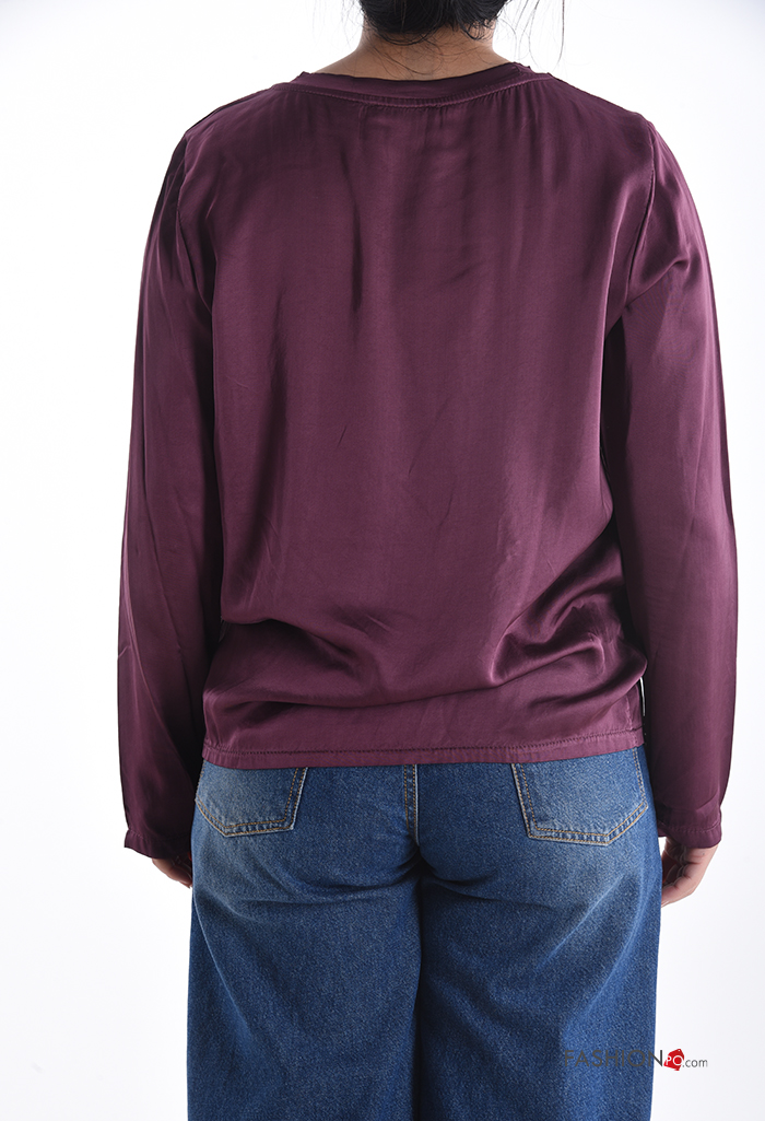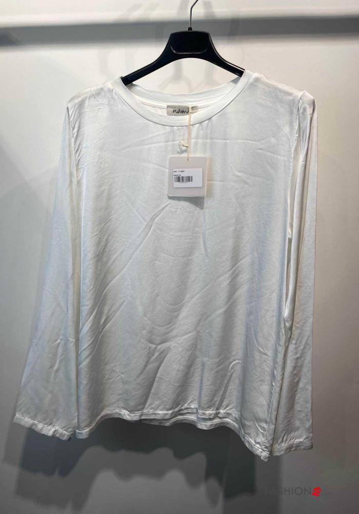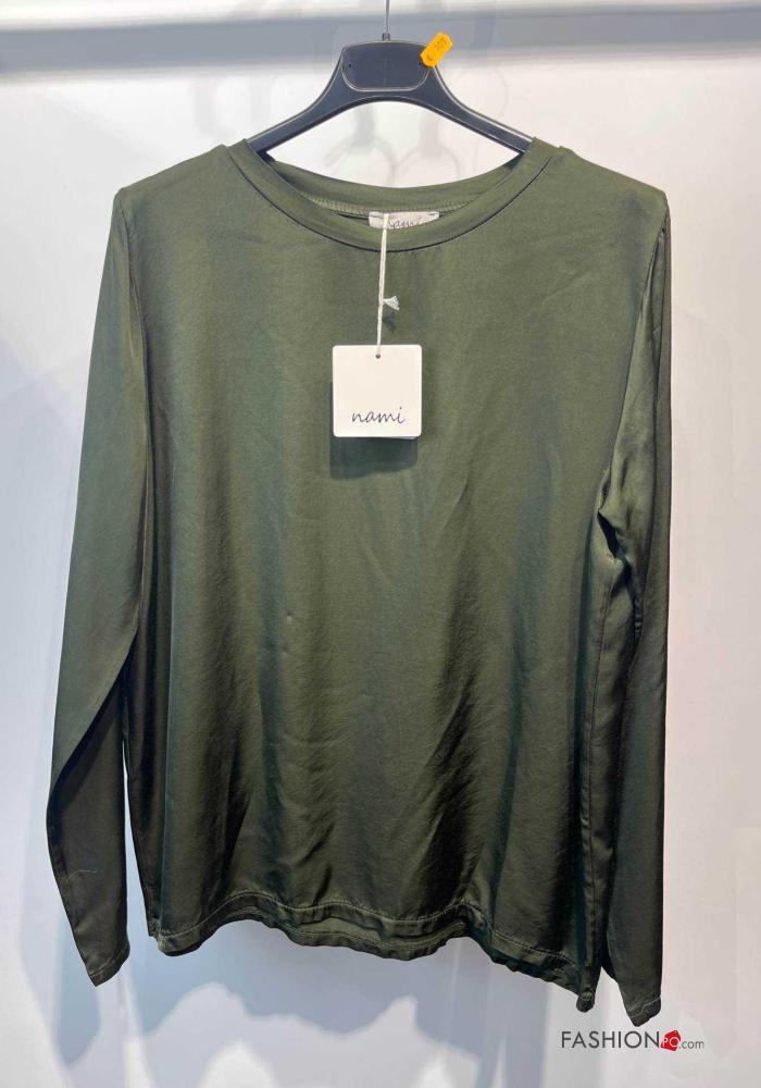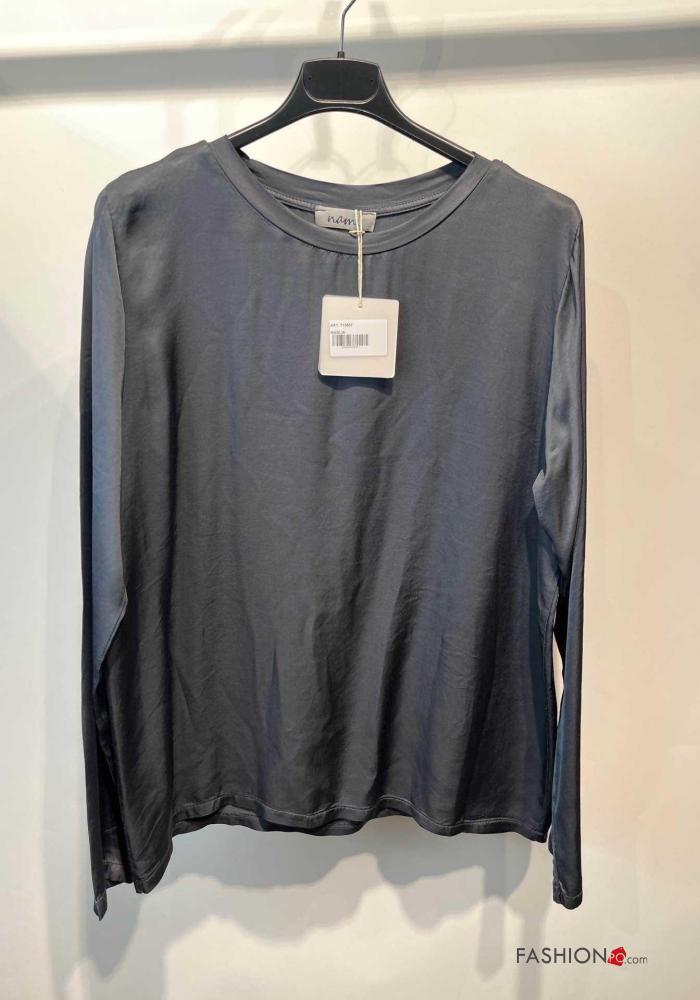 Home > Clothing > T-shirts & Tops > satin crew neck Long sleeved top