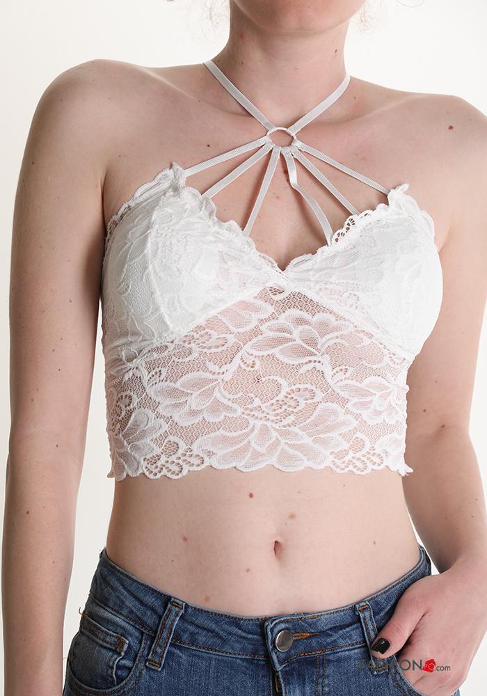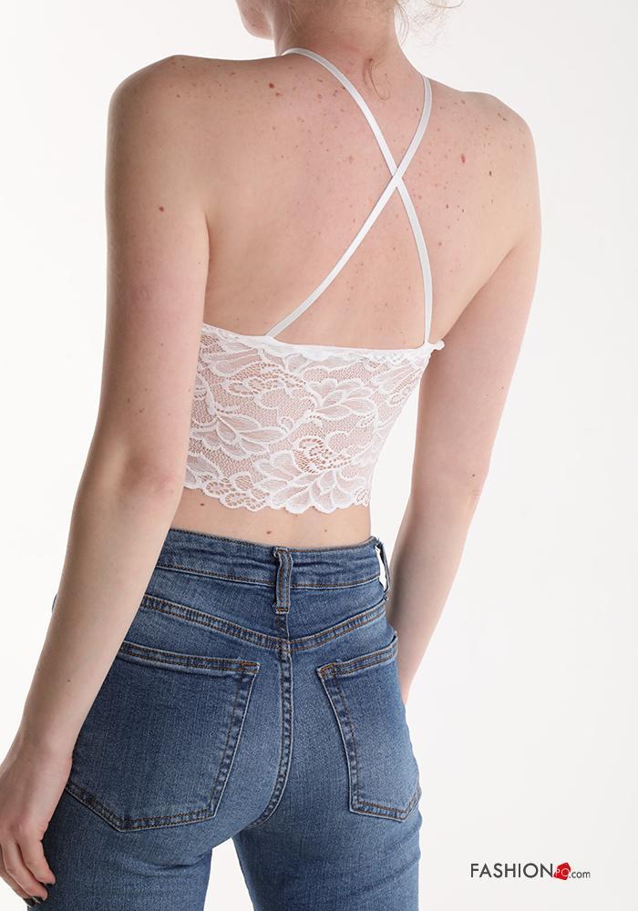 Home > Clothing > T-shirts & Tops > Embroidered mini backless lace trim Top with cups