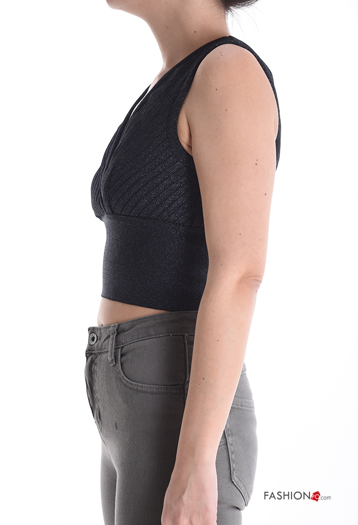 sleeveless backless mini Top with v-neck with zip