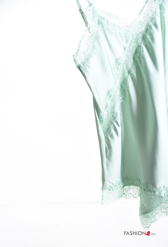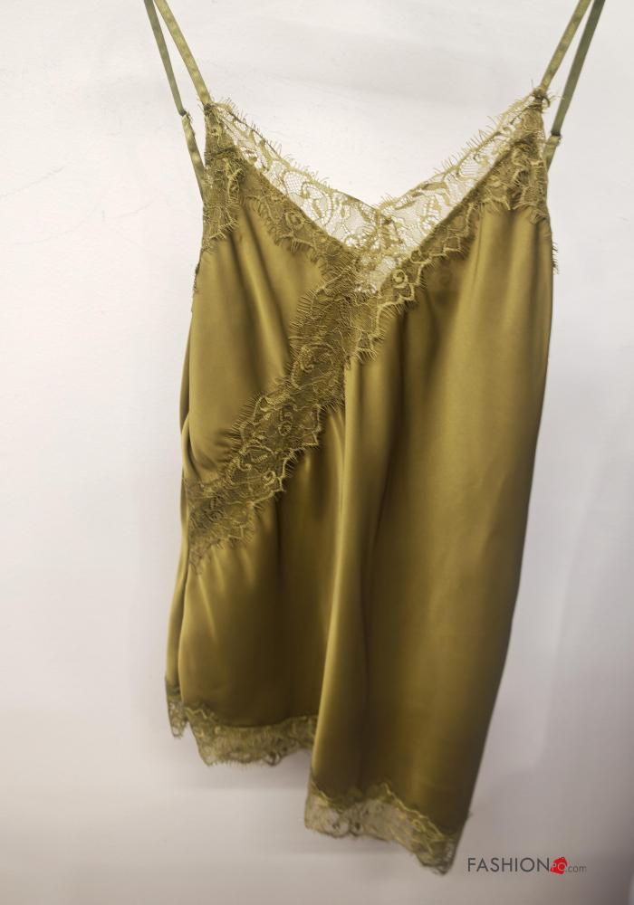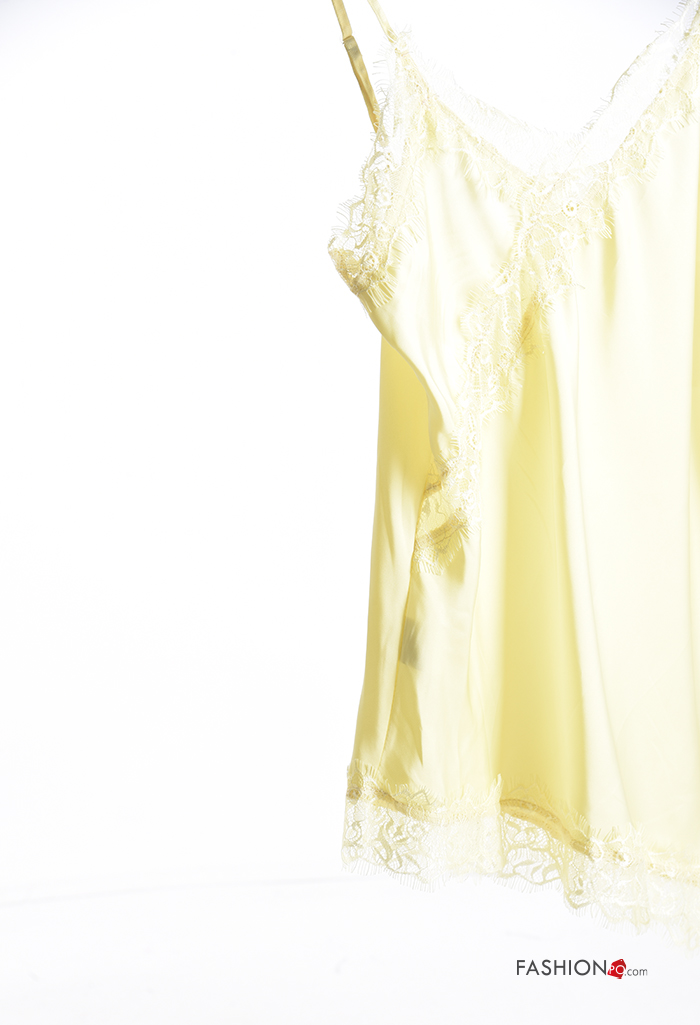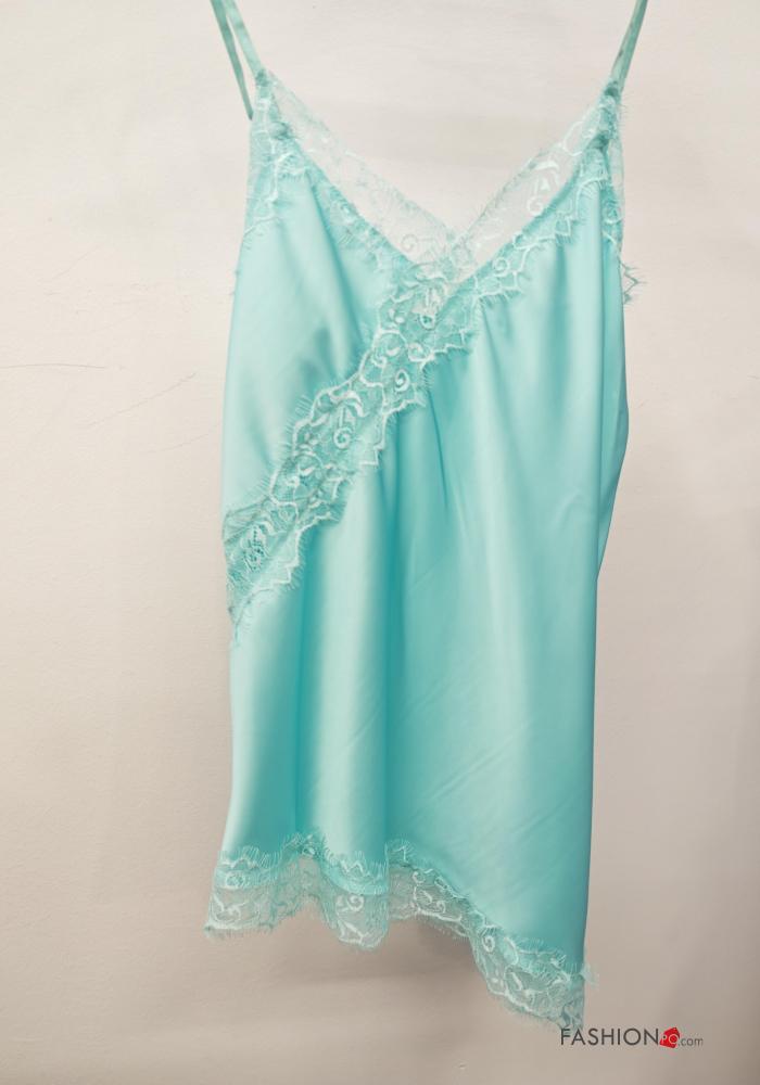 Home > Clothing > T-shirts & Tops > lace trim asymmetrical satin Top
