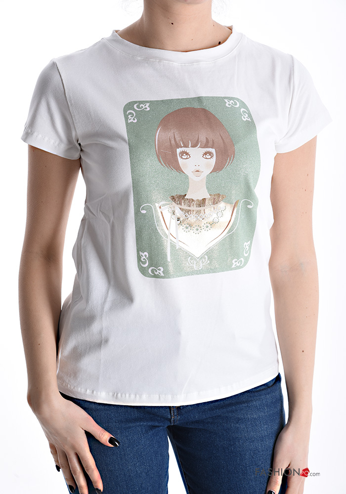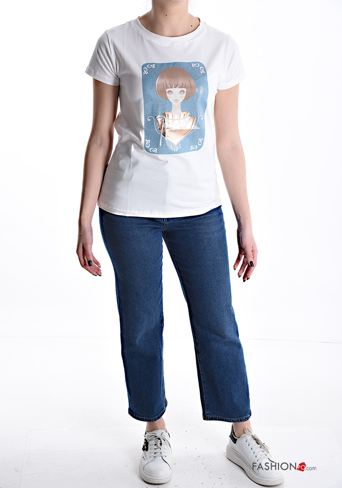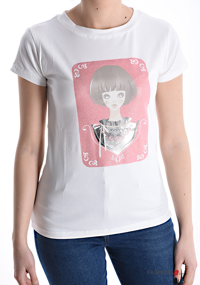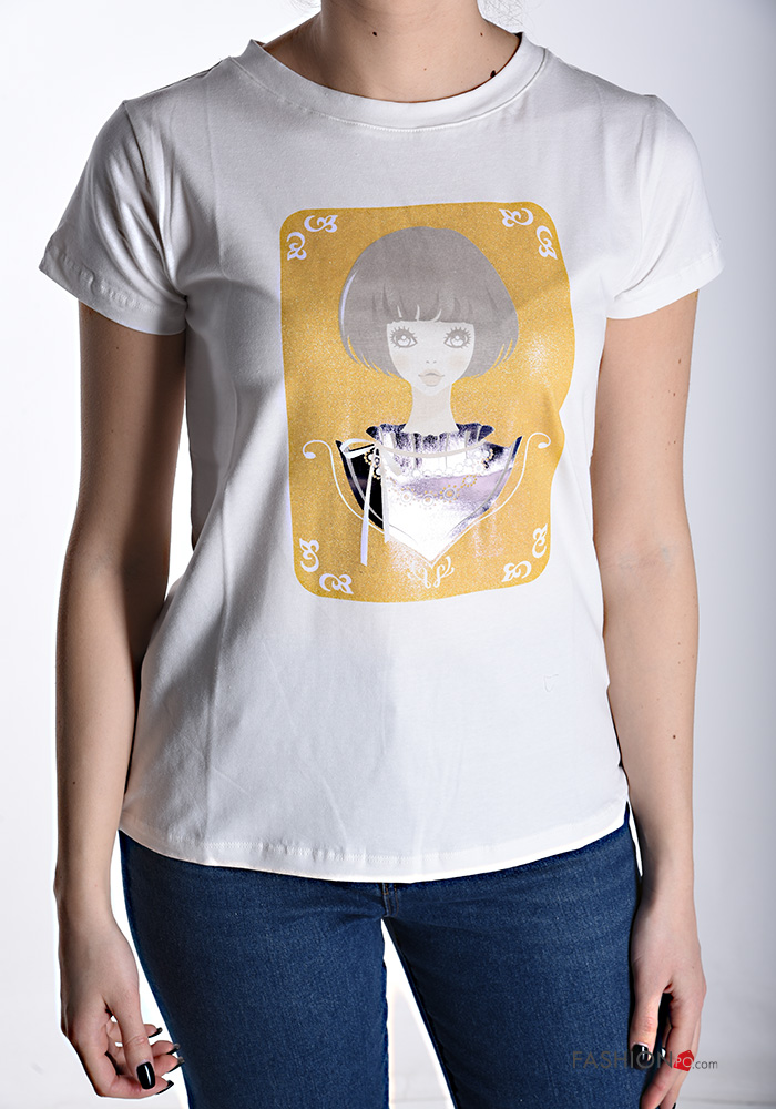 Patterned short sleeve crew neck Cotton T-shirt