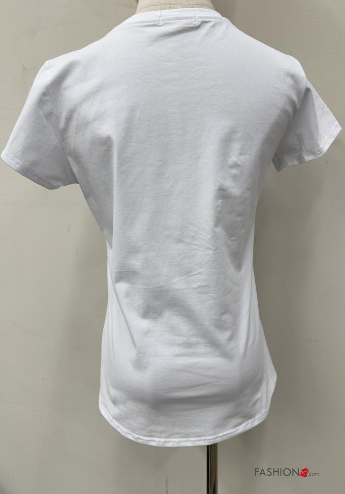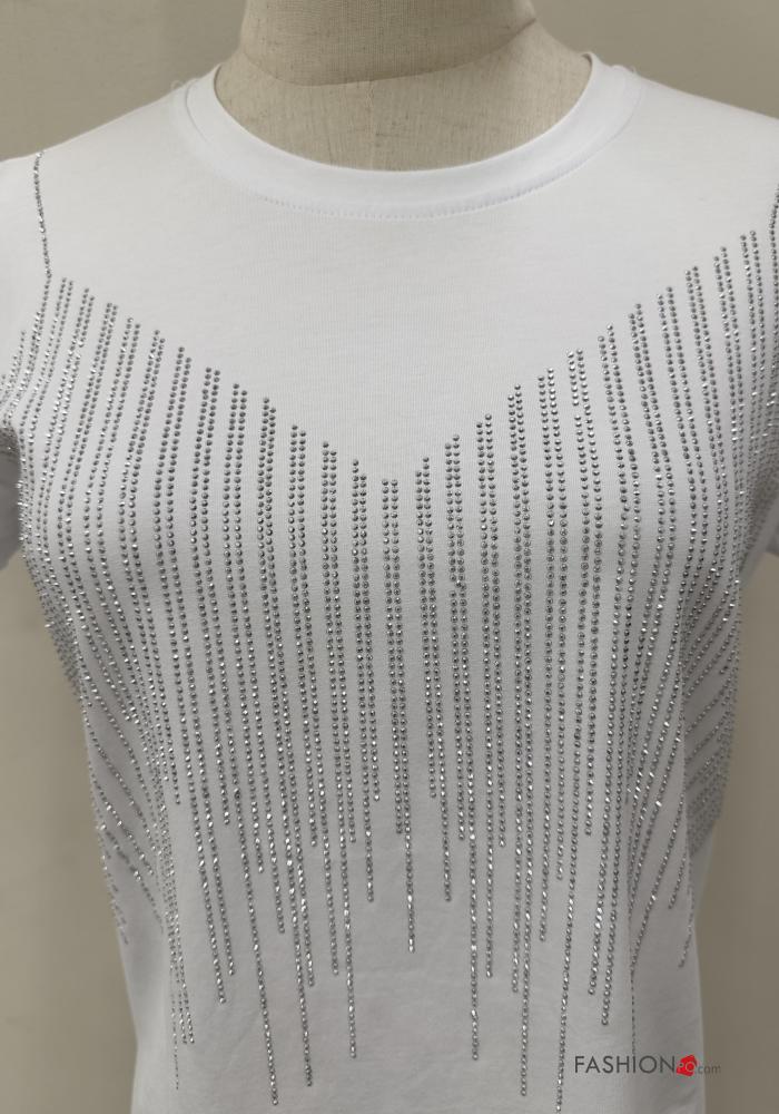 Home > Clothing > T-shirts & Tops > short sleeve crew neck Cotton T-shirt with rhinestones