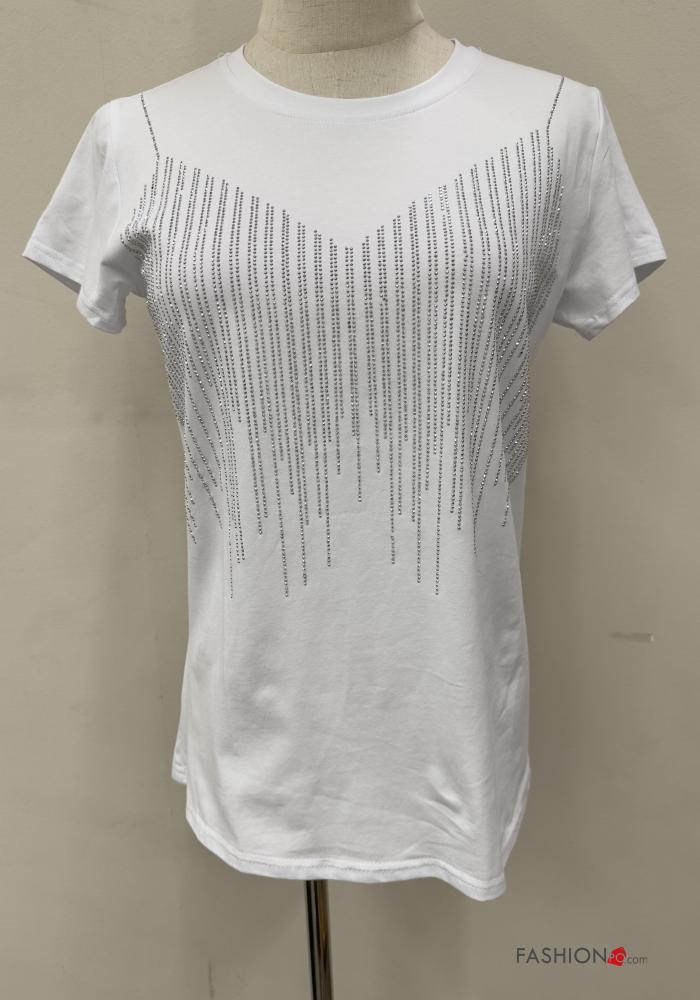 short sleeve crew neck Cotton T-shirt with rhinestones