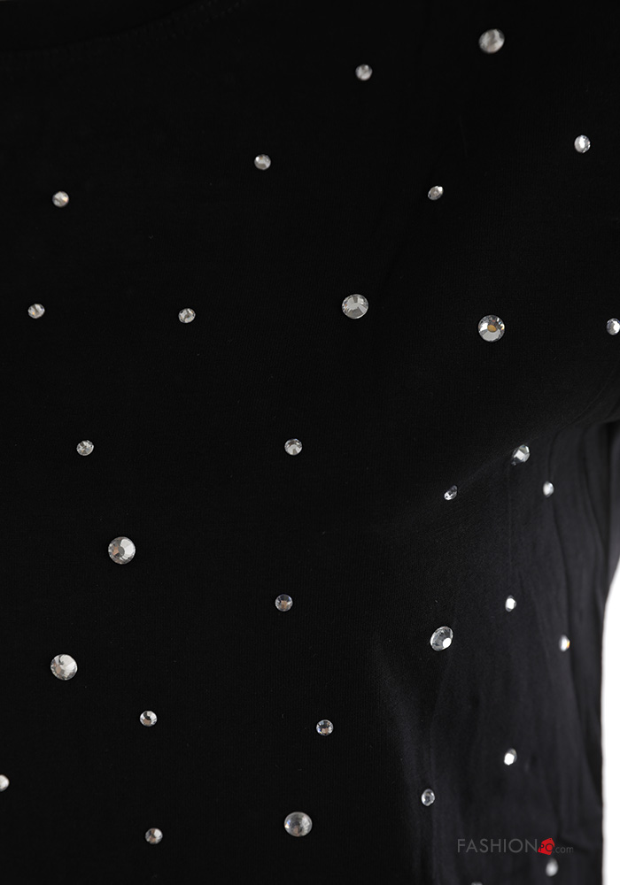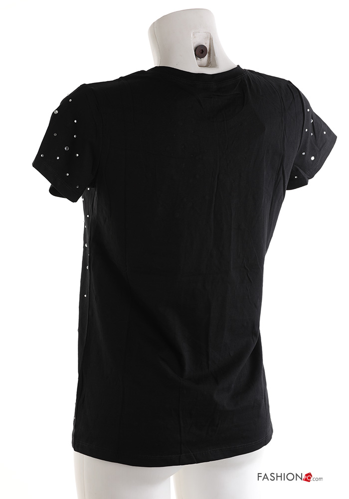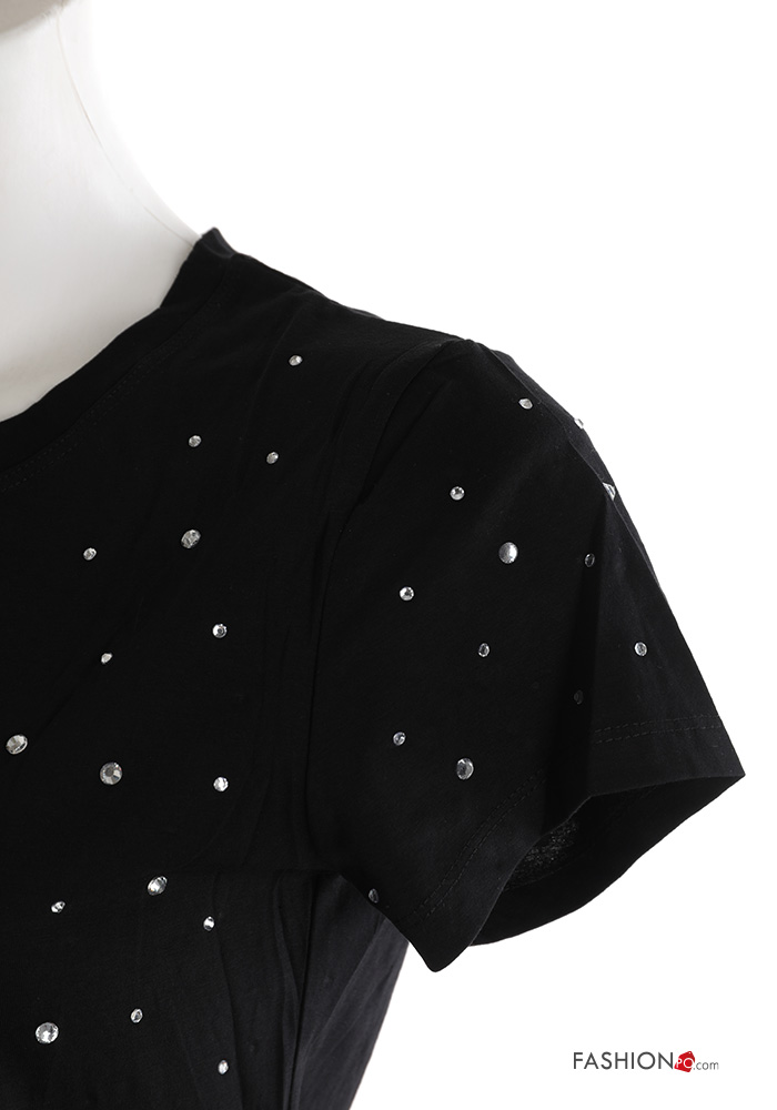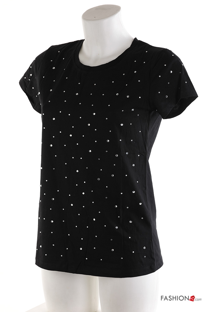 Home > Clothing > T-shirts & Tops > short sleeve crew neck Cotton T-shirt with rhinestones