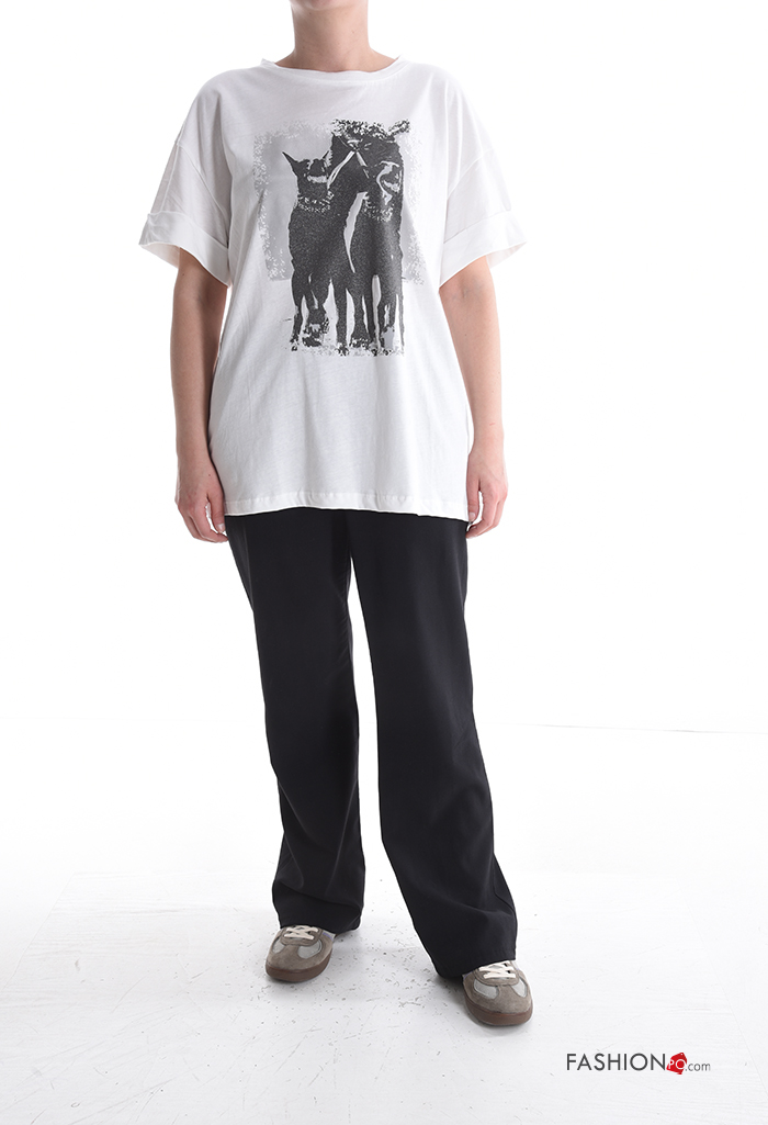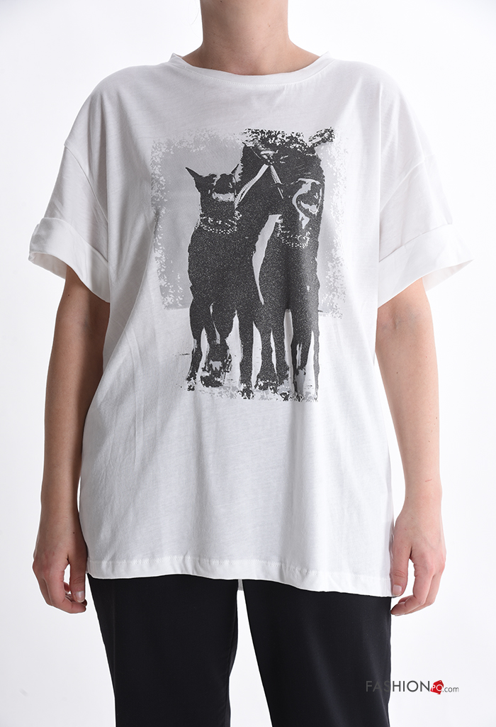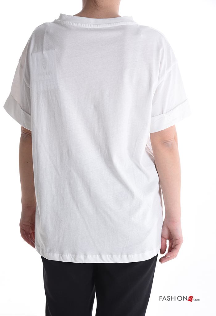 Home > Clothing > T-shirts & Tops > Patterned short sleeve crew neck Cotton T-shirt