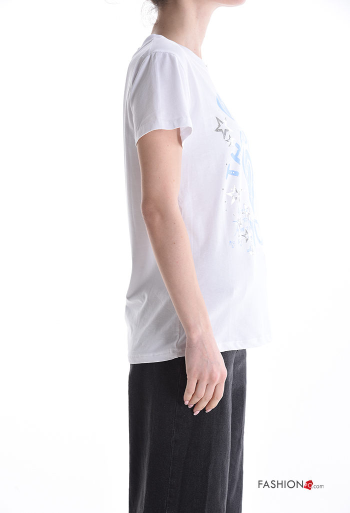 Patterned short sleeve crew neck Cotton T-shirt