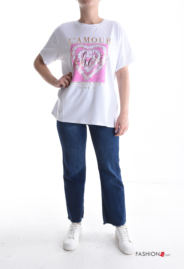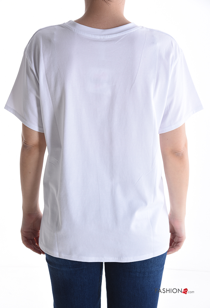 Patterned short sleeve crew neck Cotton T-shirt