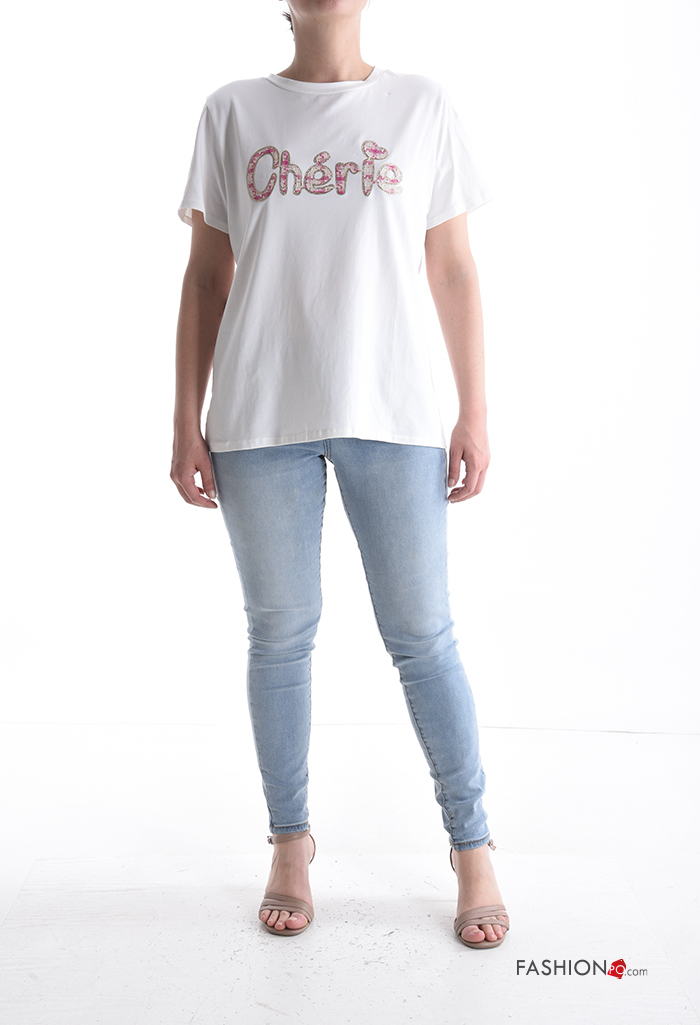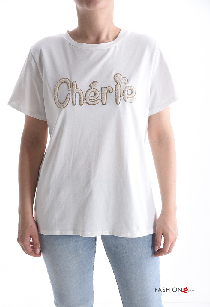 Home > Clothing > T-shirts & Tops > Lettering print short sleeve crew neck Cotton T-shirt