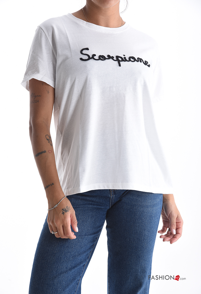Lettering print short sleeve crew neck Cotton T-shirt