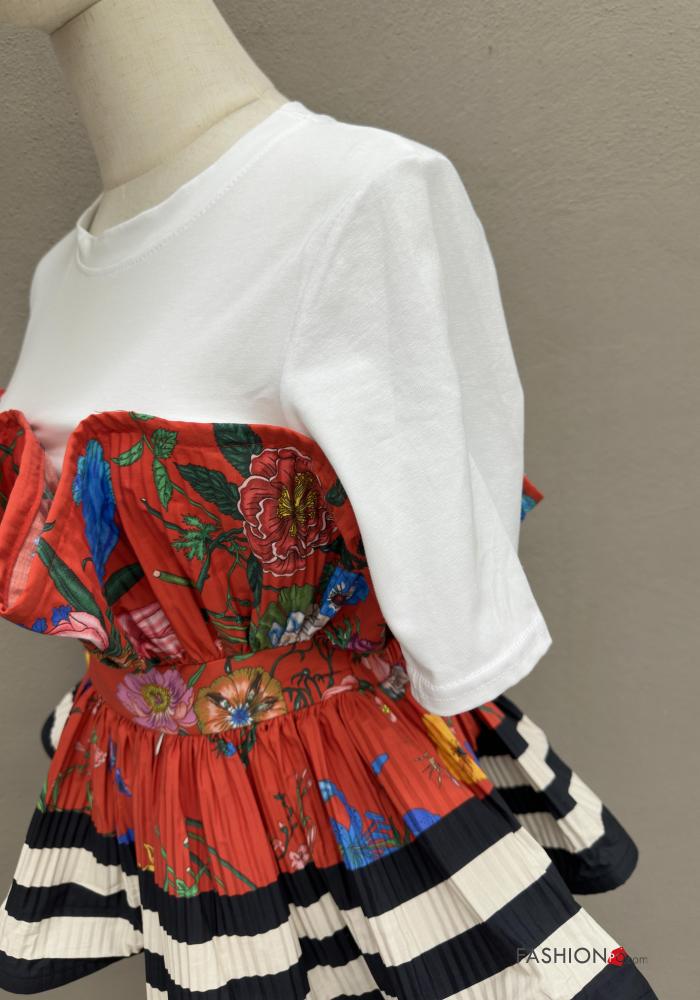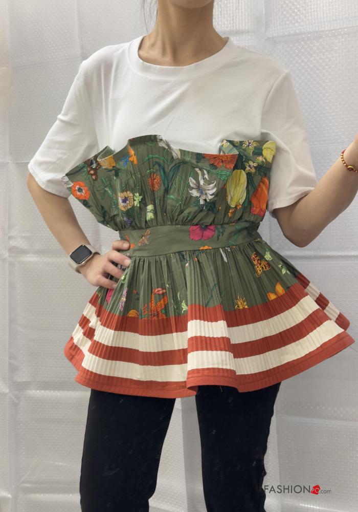 pleated short sleeve Cotton T-shirt with flounces