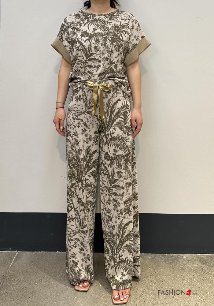 Floral short sleeve crew neck lurex T-shirt with elastic